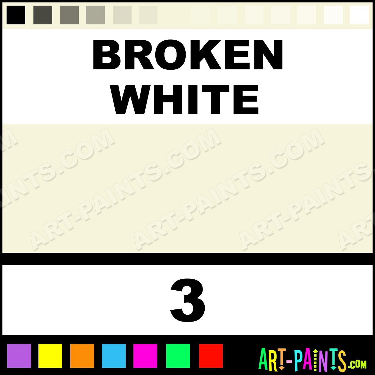 This beautiful Cake Makeup Body Face shade is called Broken White, and comes from a company called Grimas. Their product number, along with the HTML color code, RGB, and CMYK codes are listed below. This Beautiful Shade of Broken White and others can be found in the Grimas Cake Makeup Art Paint Gallery! Also be sure to browse through the other wonderful Professional Color Galleries of Face Paint, Makeup, Stage, Theater and Clown Paints to see more of Grimas Cake Makeup Body Brand Paints and other Body and Face Paint Manufacturers. And as always, Paint Paint Paint! -Art-Paints.com