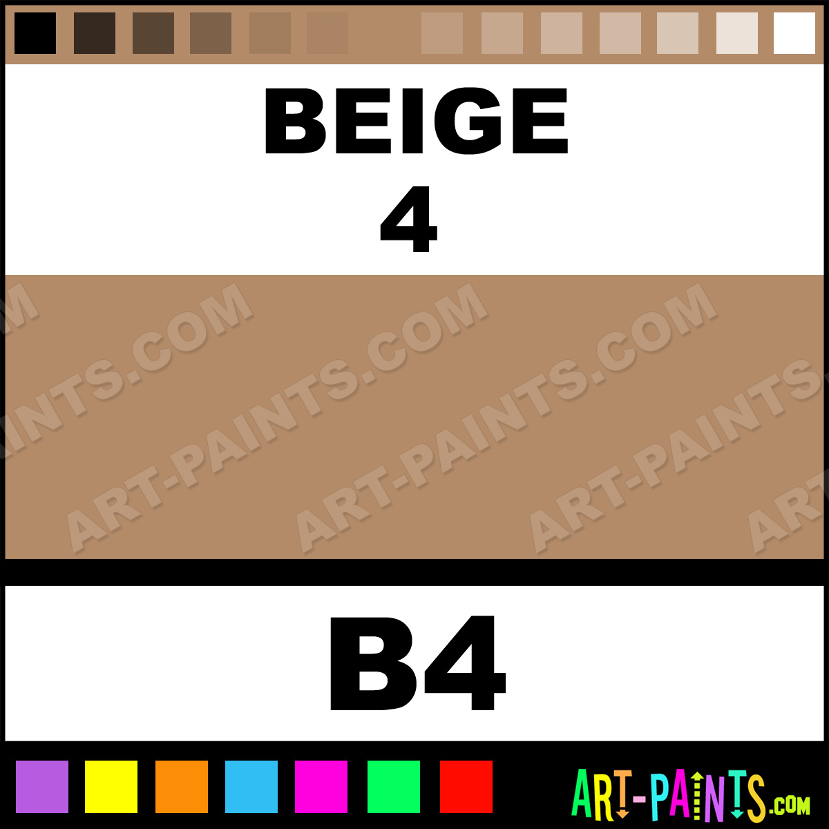 This beautiful Camouflage Makeup Body Face shade is called Beige 4, and comes from a company called Grimas. Their product number, along with the HTML color code, RGB, and CMYK codes are listed below. This Beautiful Shade of Beige 4 and others can be found in the Grimas Camouflage Makeup Art Paint Gallery! Also be sure to browse through the other wonderful Professional Color Galleries of Face Paint, Makeup, Stage, Theater and Clown Paints to see more of Grimas Camouflage Makeup Body Brand Paints and other Body and Face Paint Manufacturers. And as always, Paint Paint Paint! -Art-Paints.com