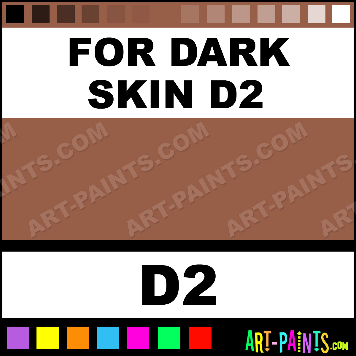 This beautiful Creme Makeup Body Face shade is called For Dark Skin D2, and comes from a company called Grimas. Their product number, along with the HTML color code, RGB, and CMYK codes are listed below. This Beautiful Shade of For Dark Skin D2 and others can be found in the Grimas Creme Makeup Art Paint Gallery! Also be sure to browse through the other wonderful Professional Color Galleries of Face Paint, Makeup, Stage, Theater and Clown Paints to see more of Grimas Creme Makeup Body Brand Paints and other Body and Face Paint Manufacturers. And as always, Paint Paint Paint! -Art-Paints.com