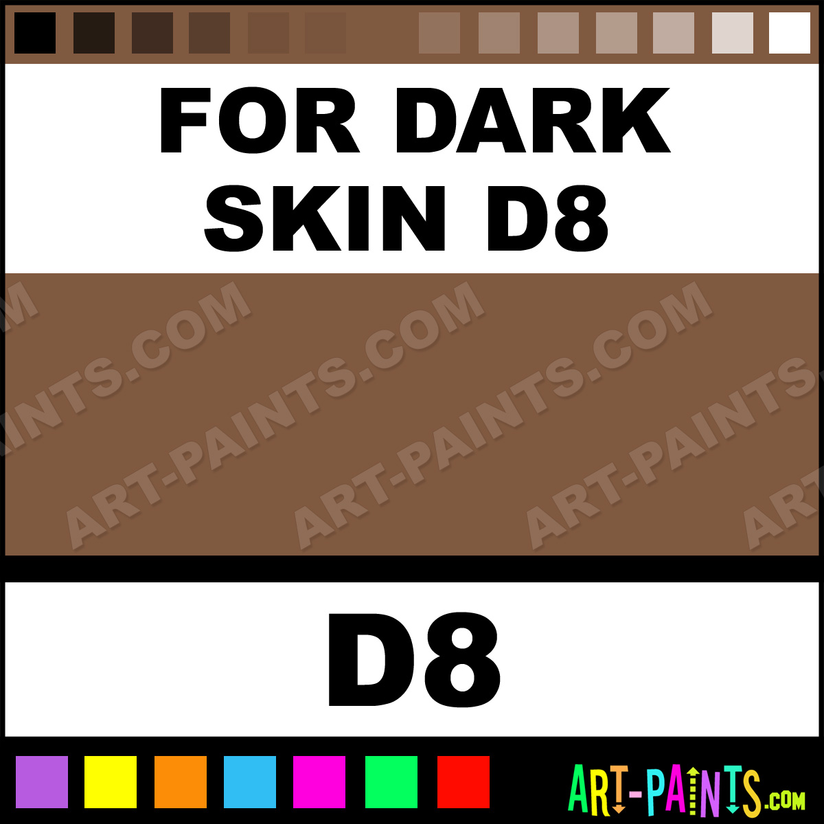 This beautiful Creme Makeup Body Face shade is called For Dark Skin D8, and comes from a company called Grimas. Their product number, along with the HTML color code, RGB, and CMYK codes are listed below. This Beautiful Shade of For Dark Skin D8 and others can be found in the Grimas Creme Makeup Art Paint Gallery! Also be sure to browse through the other wonderful Professional Color Galleries of Face Paint, Makeup, Stage, Theater and Clown Paints to see more of Grimas Creme Makeup Body Brand Paints and other Body and Face Paint Manufacturers. And as always, Paint Paint Paint! -Art-Paints.com