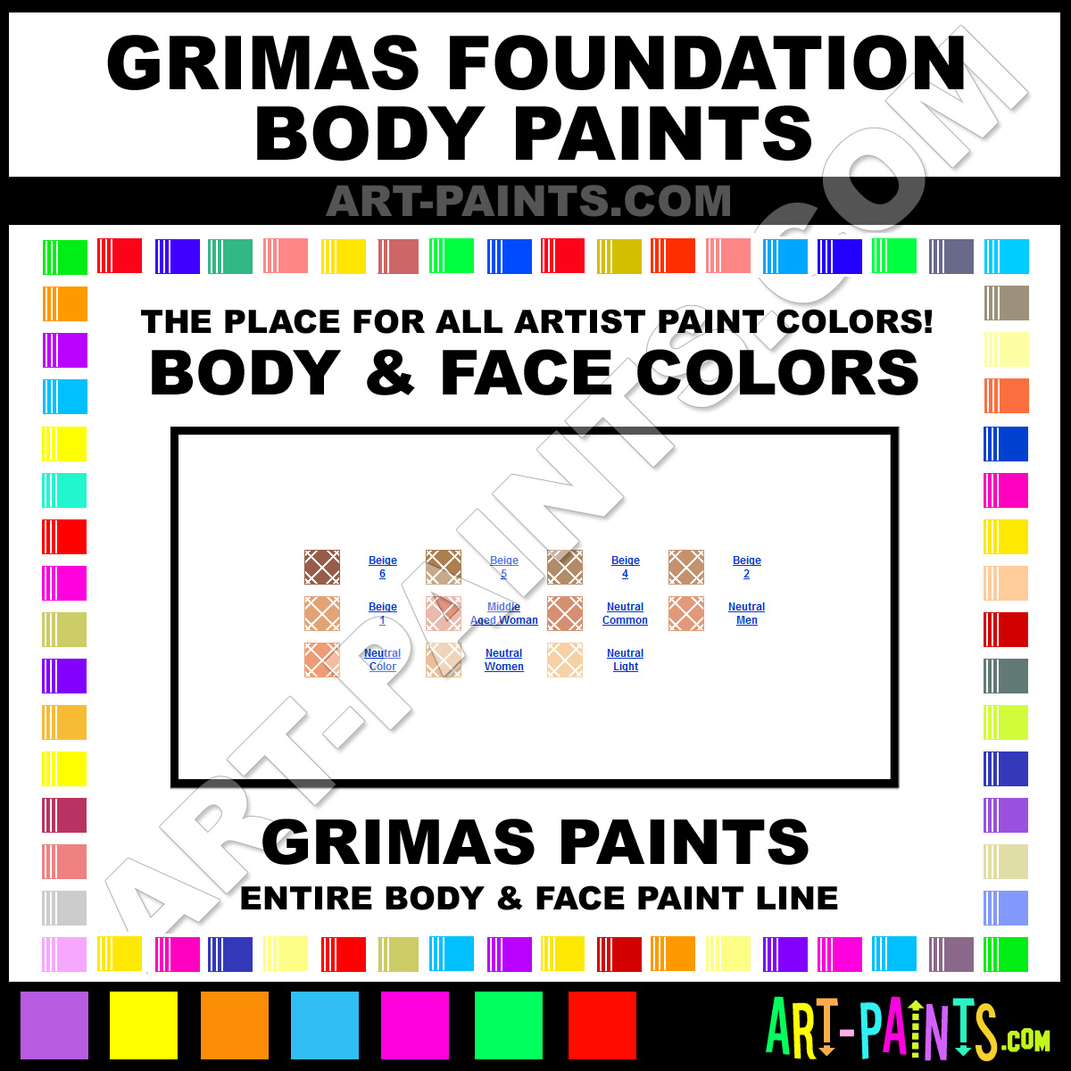 Grimas knows Body and Face Paints! They make a wonderful brand of paint called Grimas Foundation Body Colors that suits all types of artists, whether they deal with Face Makeup, Body Paints, Stage and Theater Paint or even Clown Paints! They strive to perfect the process of color and are one of the most popular Body Paint Brand companies in the world. Enjoy their entire paint brand collection from the list below. Grimas makes wonderful Artists Body and Face Paints that everyone is sure to enjoy! Choose an Body Paint Color below to view that Hue and all their great related color paints. Paint on!     -Art-Paints.com