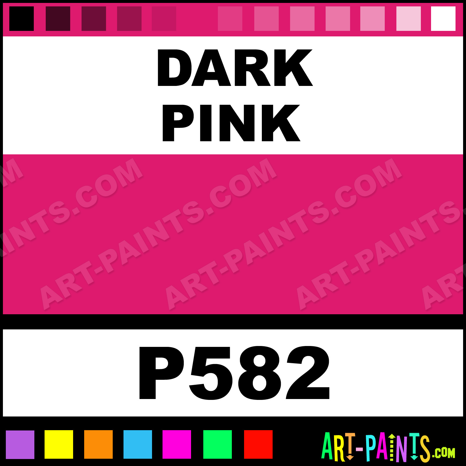 This beautiful Makeup Pencil Body Face shade is called Dark Pink, and comes from a company called Grimas. Their product number, along with the HTML color code, RGB, and CMYK codes are listed below. This Beautiful Shade of Dark Pink and others can be found in the Grimas Makeup Pencil Art Paint Gallery! Also be sure to browse through the other wonderful Professional Color Galleries of Face Paint, Makeup, Stage, Theater and Clown Paints to see more of Grimas Makeup Pencil Body Brand Paints and other Body and Face Paint Manufacturers. And as always, Paint Paint Paint! -Art-Paints.com