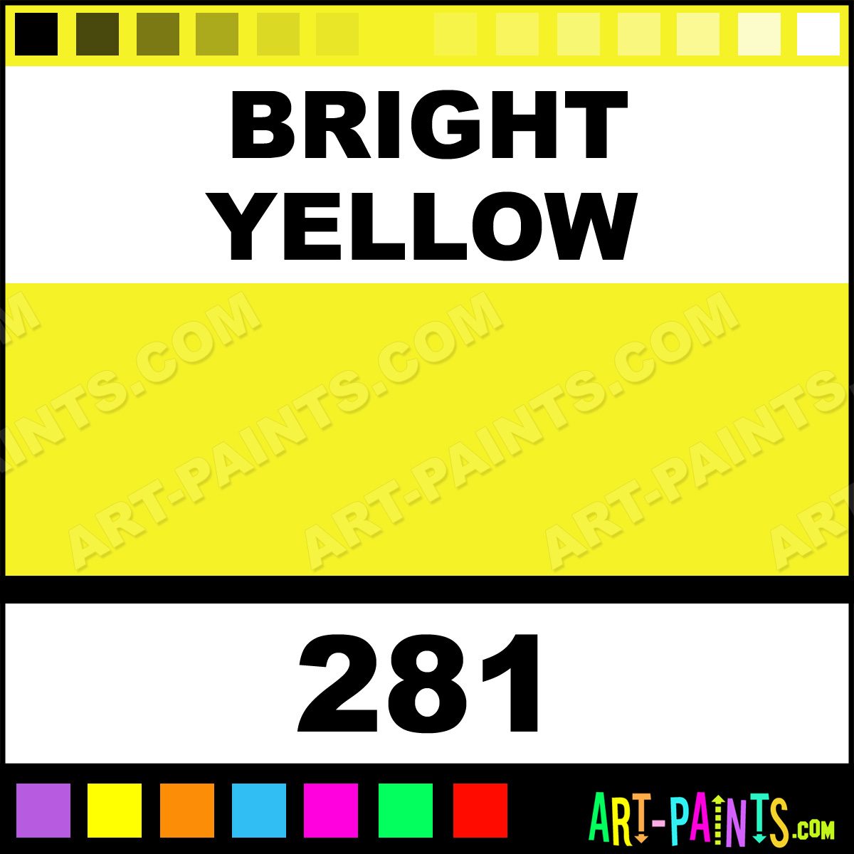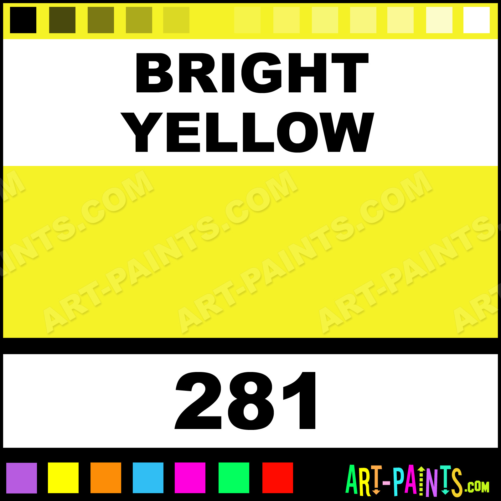 This beautiful Rouge Eye Shadow Body Face shade is called Bright Yellow, and comes from a company called Grimas. Their product number, along with the HTML color code, RGB, and CMYK codes are listed below. This Beautiful Shade of Bright Yellow and others can be found in the Grimas Rouge Eye Shadow Art Paint Gallery! Also be sure to browse through the other wonderful Professional Color Galleries of Face Paint, Makeup, Stage, Theater and Clown Paints to see more of Grimas Rouge Eye Shadow Body Brand Paints and other Body and Face Paint Manufacturers. And as always, Paint Paint Paint! -Art-Paints.com