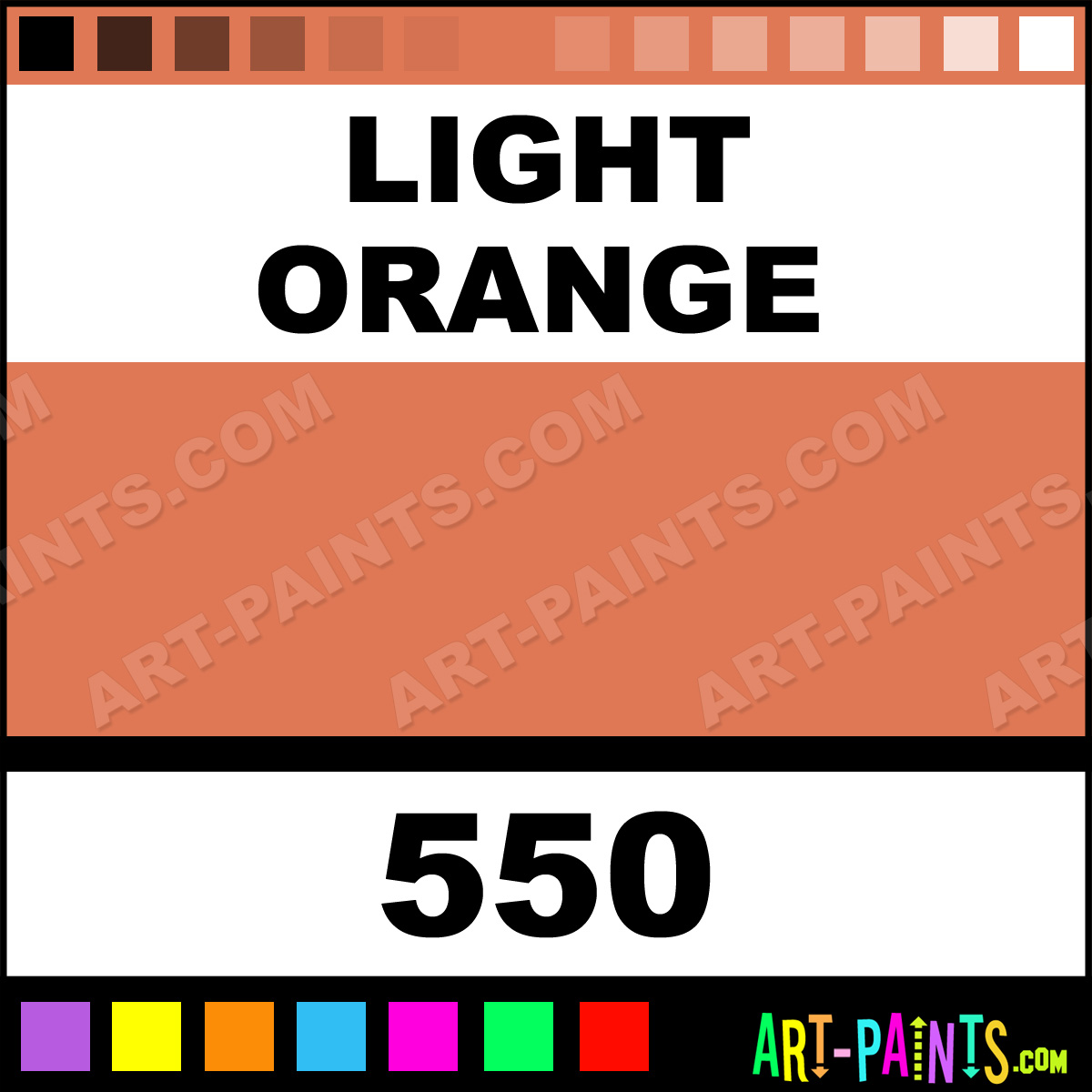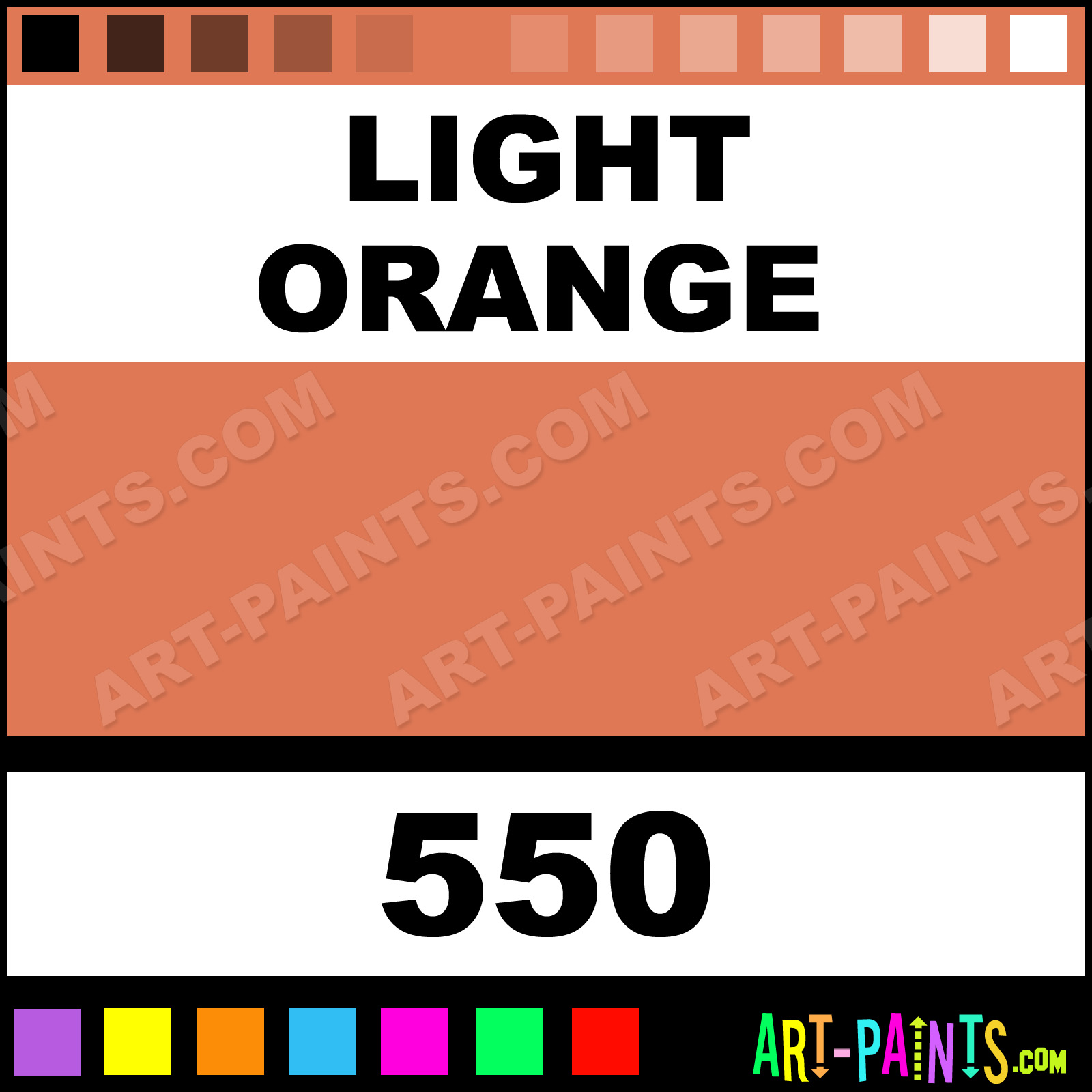 This beautiful Rouge Eye Shadow Body Face shade is called Light Orange, and comes from a company called Grimas. Their product number, along with the HTML color code, RGB, and CMYK codes are listed below. This Beautiful Shade of Light Orange and others can be found in the Grimas Rouge Eye Shadow Art Paint Gallery! Also be sure to browse through the other wonderful Professional Color Galleries of Face Paint, Makeup, Stage, Theater and Clown Paints to see more of Grimas Rouge Eye Shadow Body Brand Paints and other Body and Face Paint Manufacturers. And as always, Paint Paint Paint! -Art-Paints.com