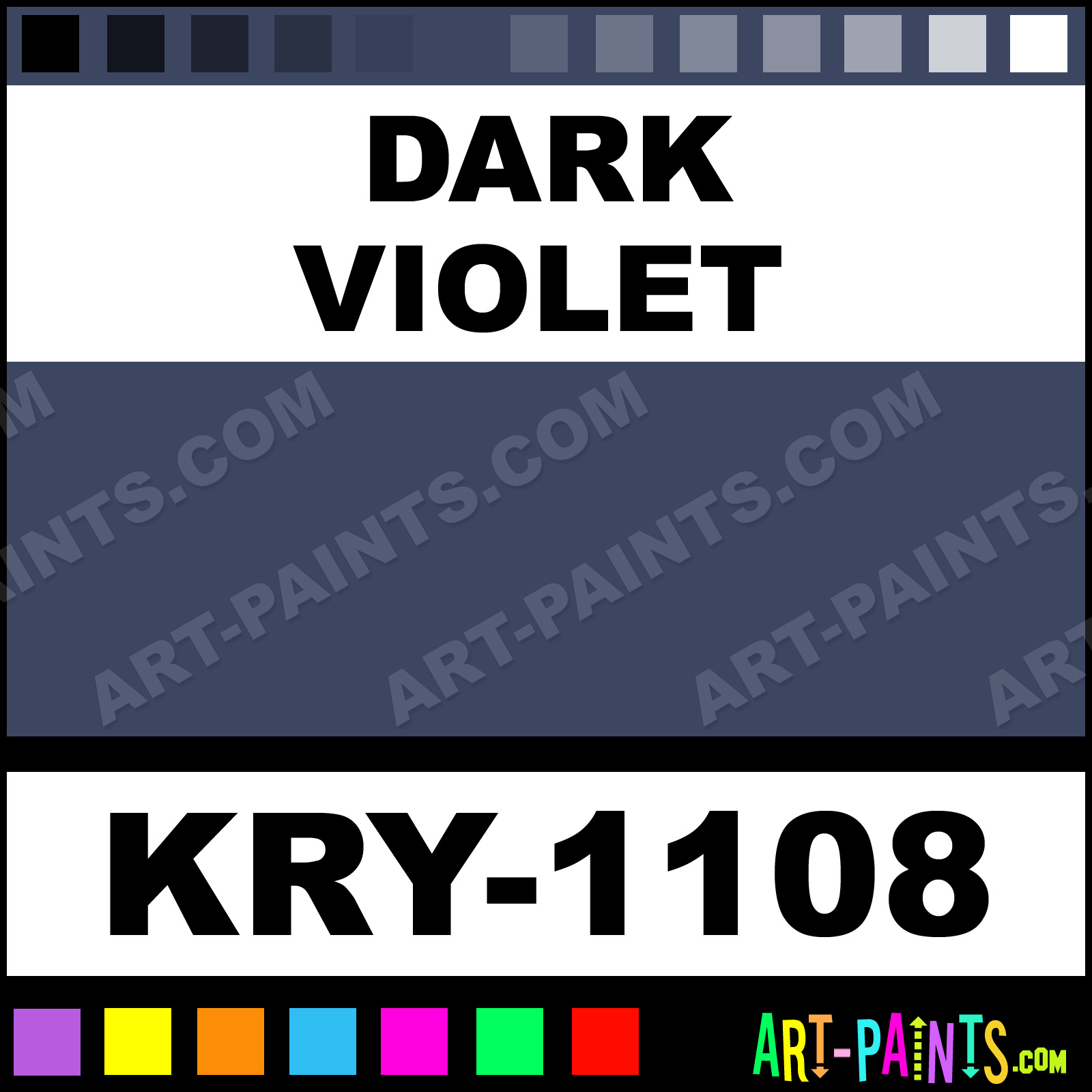 This beautiful Aquacolor 24 Body Face shade is called Dark Violet, and comes from a company called Kryolan. Their product number, along with the HTML color code, RGB, and CMYK codes are listed below. This Beautiful Shade of Dark Violet and others can be found in the Kryolan Aquacolor 24 Art Paint Gallery! Also be sure to browse through the other wonderful Professional Color Galleries of Face Paint, Makeup, Stage, Theater and Clown Paints to see more of Kryolan Aquacolor 24 Body Brand Paints and other Body and Face Paint Manufacturers. And as always, Paint Paint Paint! -Art-Paints.com