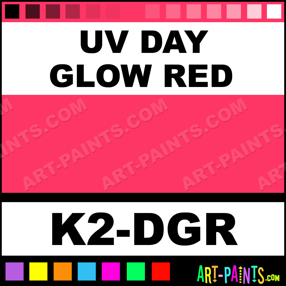 This beautiful UV Day Glow Body Face shade is called UV Day Glow Red, and comes from a company called Kryolan. Their product number, along with the HTML color code, RGB, and CMYK codes are listed below. This Beautiful Shade of UV Day Glow Red and others can be found in the Kryolan UV Day Glow Art Paint Gallery! Also be sure to browse through the other wonderful Professional Color Galleries of Face Paint, Makeup, Stage, Theater and Clown Paints to see more of Kryolan UV Day Glow Body Brand Paints and other Body and Face Paint Manufacturers. And as always, Paint Paint Paint! -Art-Paints.com
