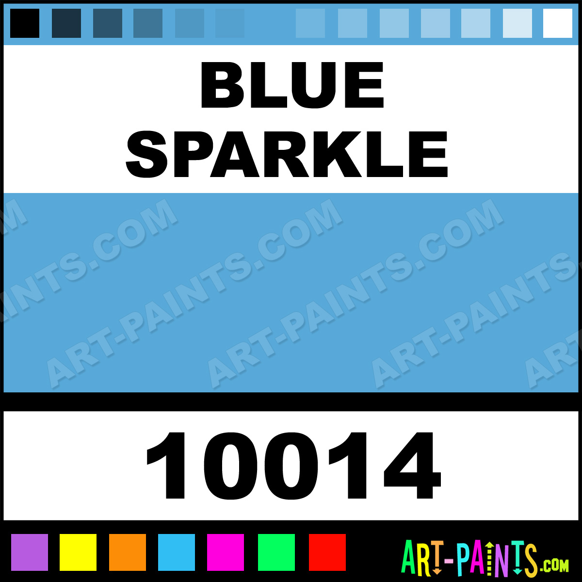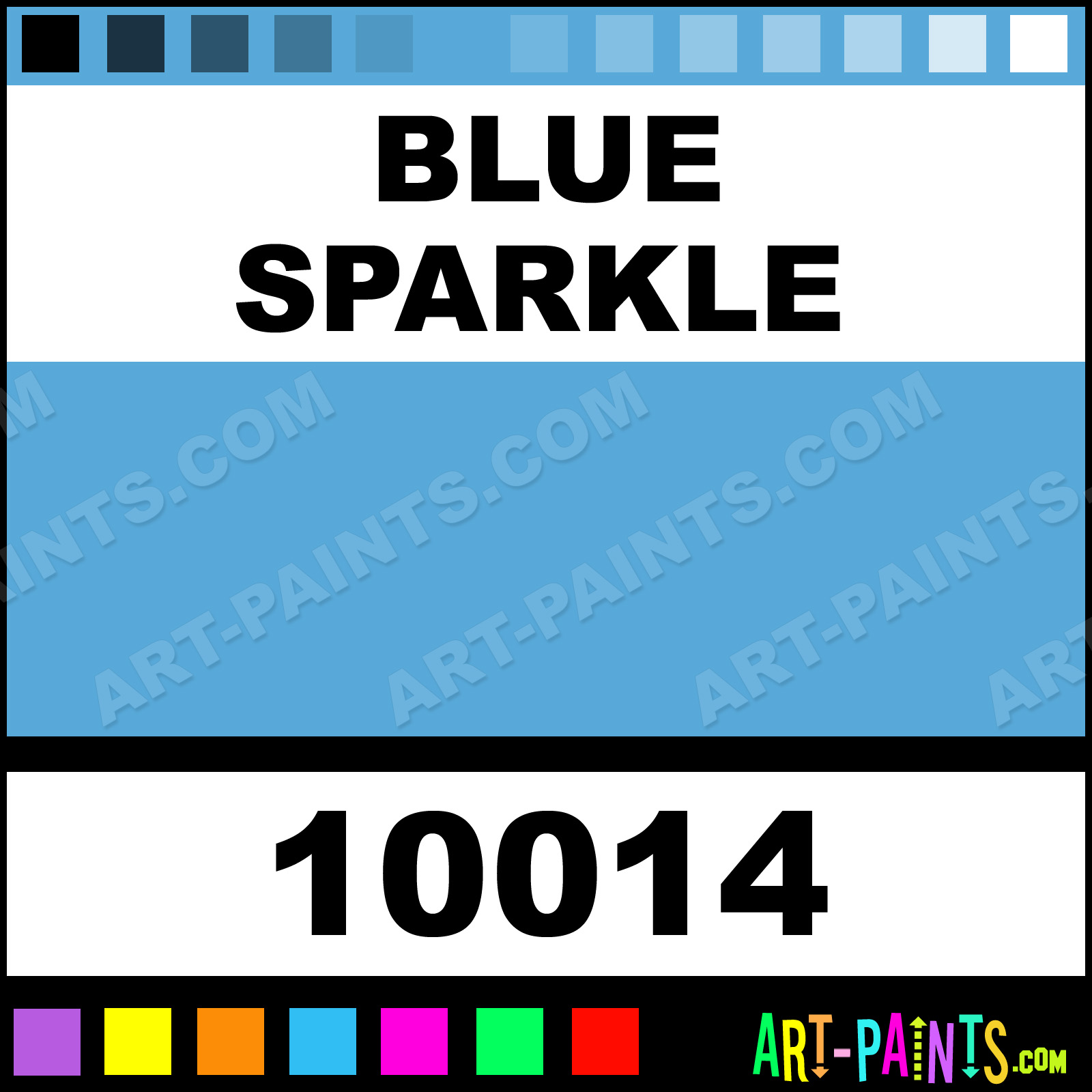 This beautiful Rainbow Metallic Body Face shade is called Blue Sparkle, and comes from a company called Liquid Latex. Their product number, along with the HTML color code, RGB, and CMYK codes are listed below. This Beautiful Shade of Blue Sparkle and others can be found in the Liquid Latex Rainbow Metallic Art Paint Gallery! Also be sure to browse through the other wonderful Professional Color Galleries of Face Paint, Makeup, Stage, Theater and Clown Paints to see more of Liquid Latex Rainbow Metallic Body Brand Paints and other Body and Face Paint Manufacturers. And as always, Paint Paint Paint! -Art-Paints.com