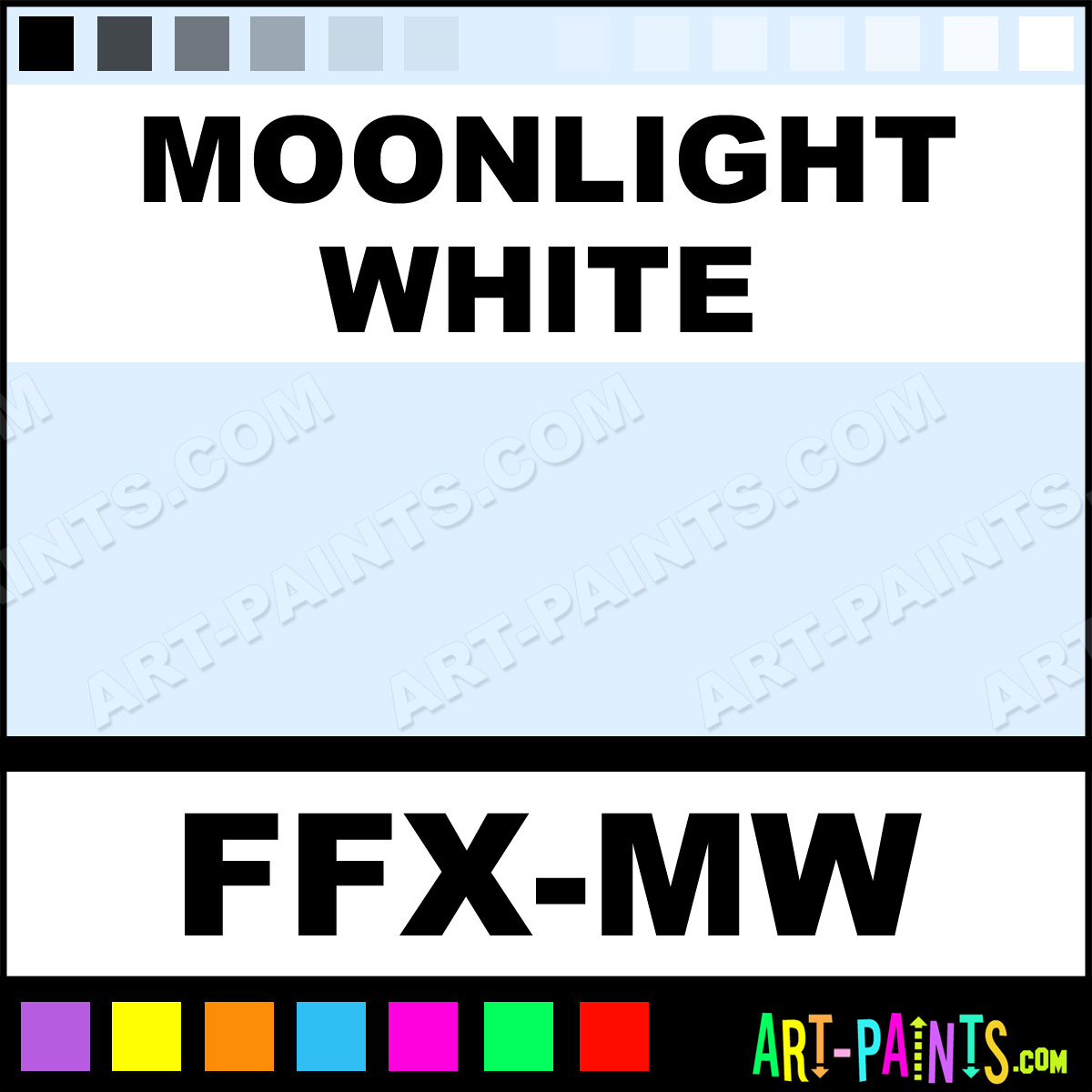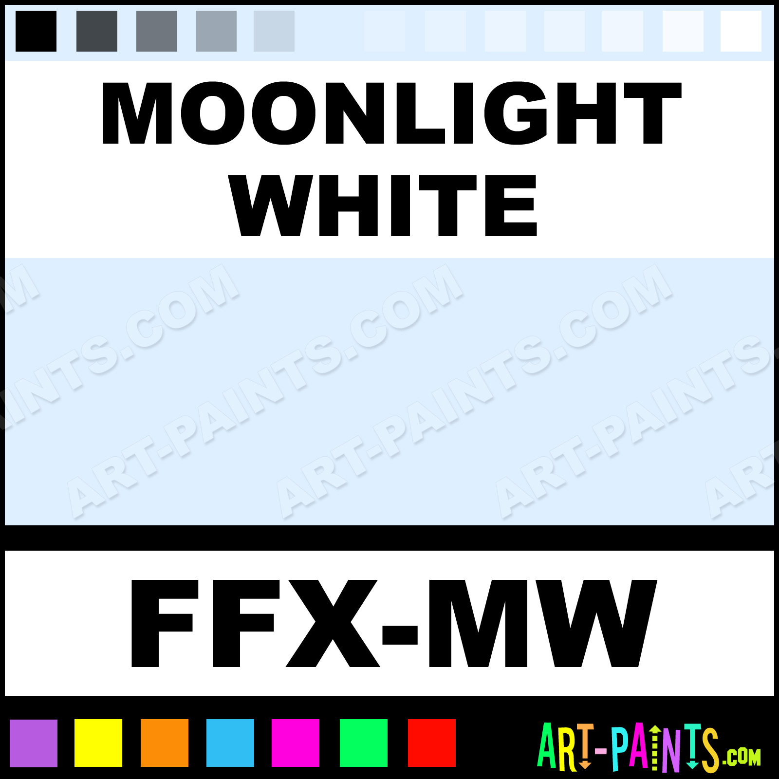 This beautiful FX Makeup Body Face shade is called Moonlight White, and comes from a company called Mehron. Their product number, along with the HTML color code, RGB, and CMYK codes are listed below. This Beautiful Shade of Moonlight White and others can be found in the Mehron FX Makeup Art Paint Gallery! Also be sure to browse through the other wonderful Professional Color Galleries of Face Paint, Makeup, Stage, Theater and Clown Paints to see more of Mehron FX Makeup Body Brand Paints and other Body and Face Paint Manufacturers. And as always, Paint Paint Paint! -Art-Paints.com