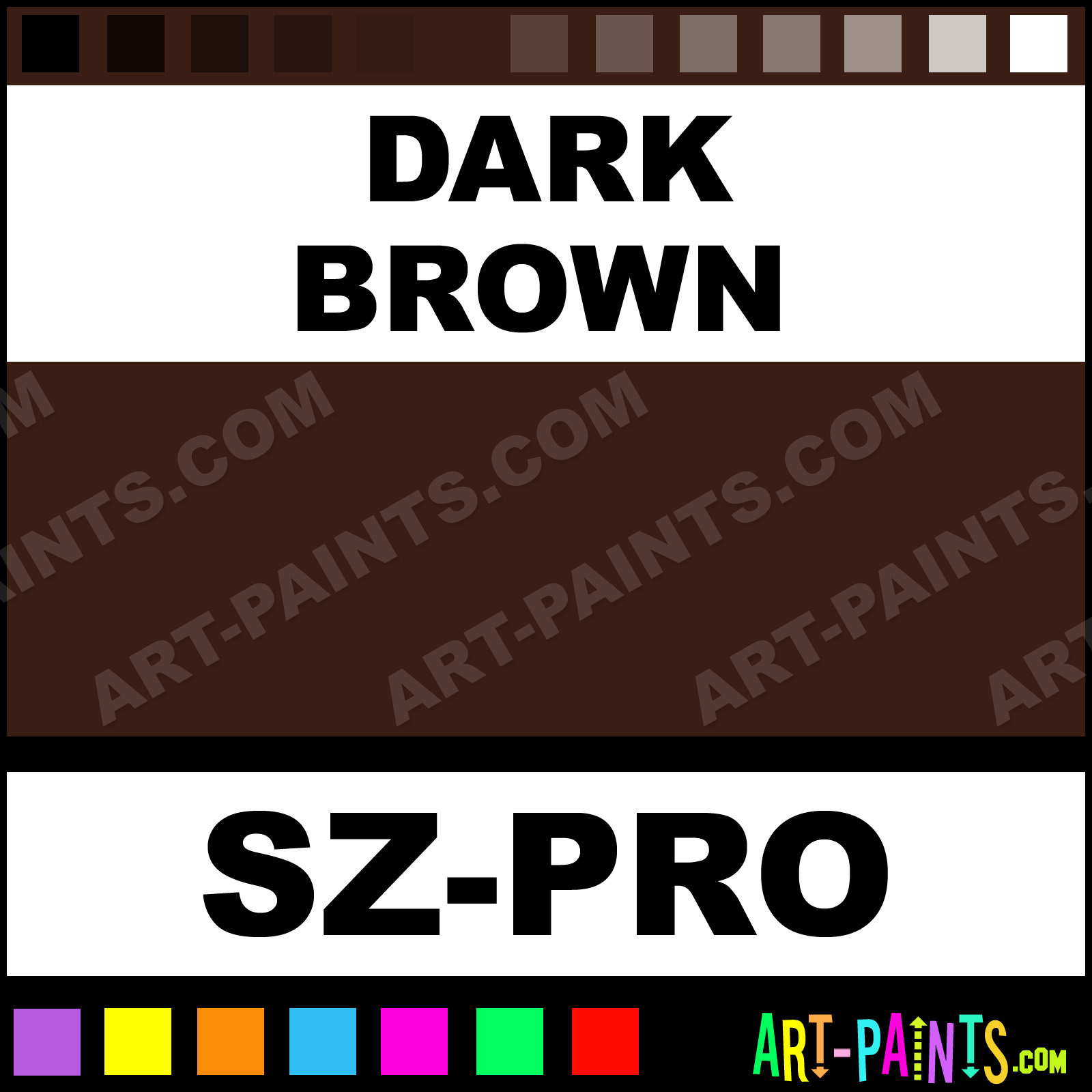 This beautiful 54 Color Pro Body Face shade is called Dark Brown, and comes from a company called Snazaroo. Their product number, along with the HTML color code, RGB, and CMYK codes are listed below. This Beautiful Shade of Dark Brown and others can be found in the Snazaroo 54 Color Pro Art Paint Gallery! Also be sure to browse through the other wonderful Professional Color Galleries of Face Paint, Makeup, Stage, Theater and Clown Paints to see more of Snazaroo 54 Color Pro Body Brand Paints and other Body and Face Paint Manufacturers. And as always, Paint Paint Paint! -Art-Paints.com