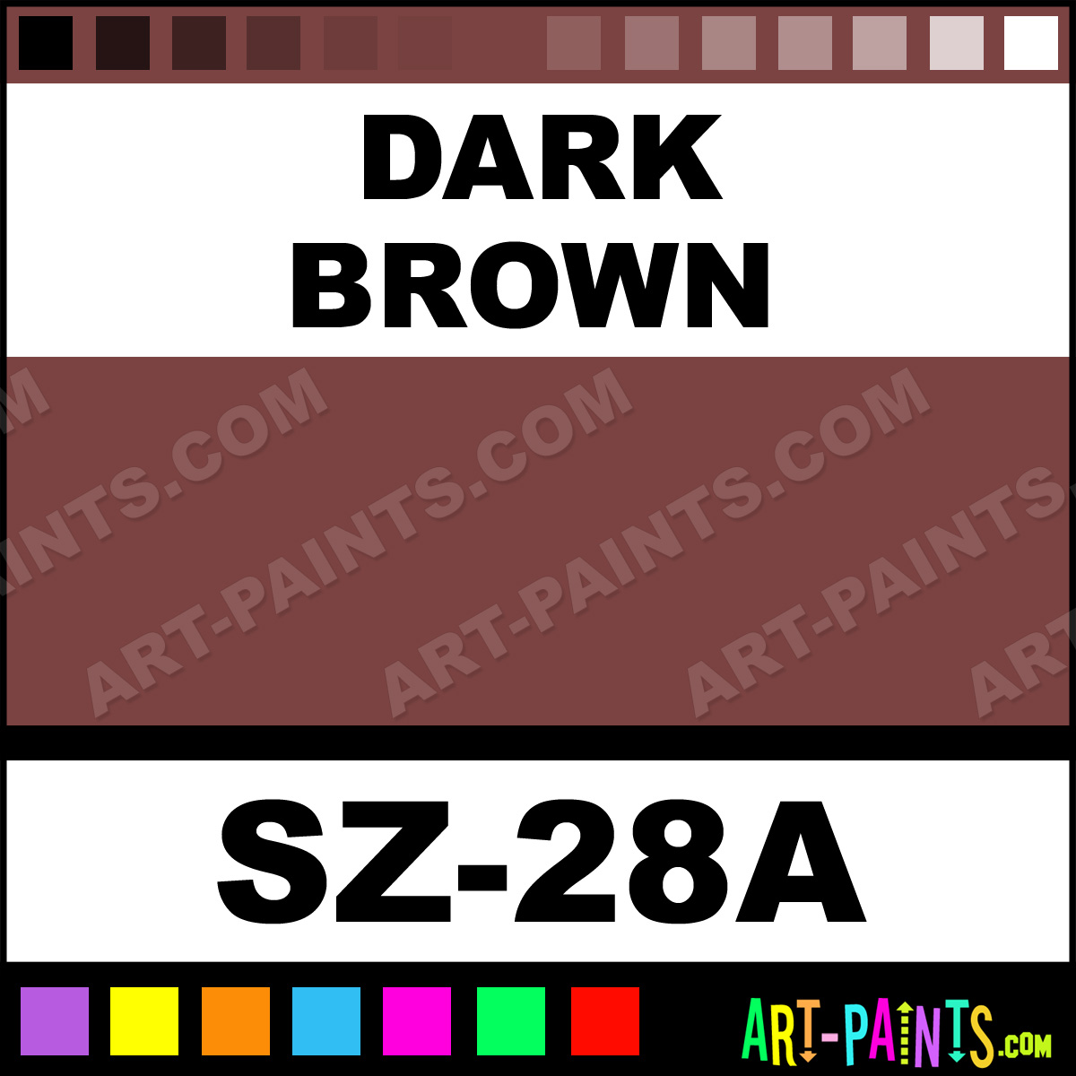 This beautiful Color Companion Body Face shade is called Dark Brown, and comes from a company called Snazaroo. Their product number, along with the HTML color code, RGB, and CMYK codes are listed below. This Beautiful Shade of Dark Brown and others can be found in the Snazaroo Color Companion Art Paint Gallery! Also be sure to browse through the other wonderful Professional Color Galleries of Face Paint, Makeup, Stage, Theater and Clown Paints to see more of Snazaroo Color Companion Body Brand Paints and other Body and Face Paint Manufacturers. And as always, Paint Paint Paint! -Art-Paints.com