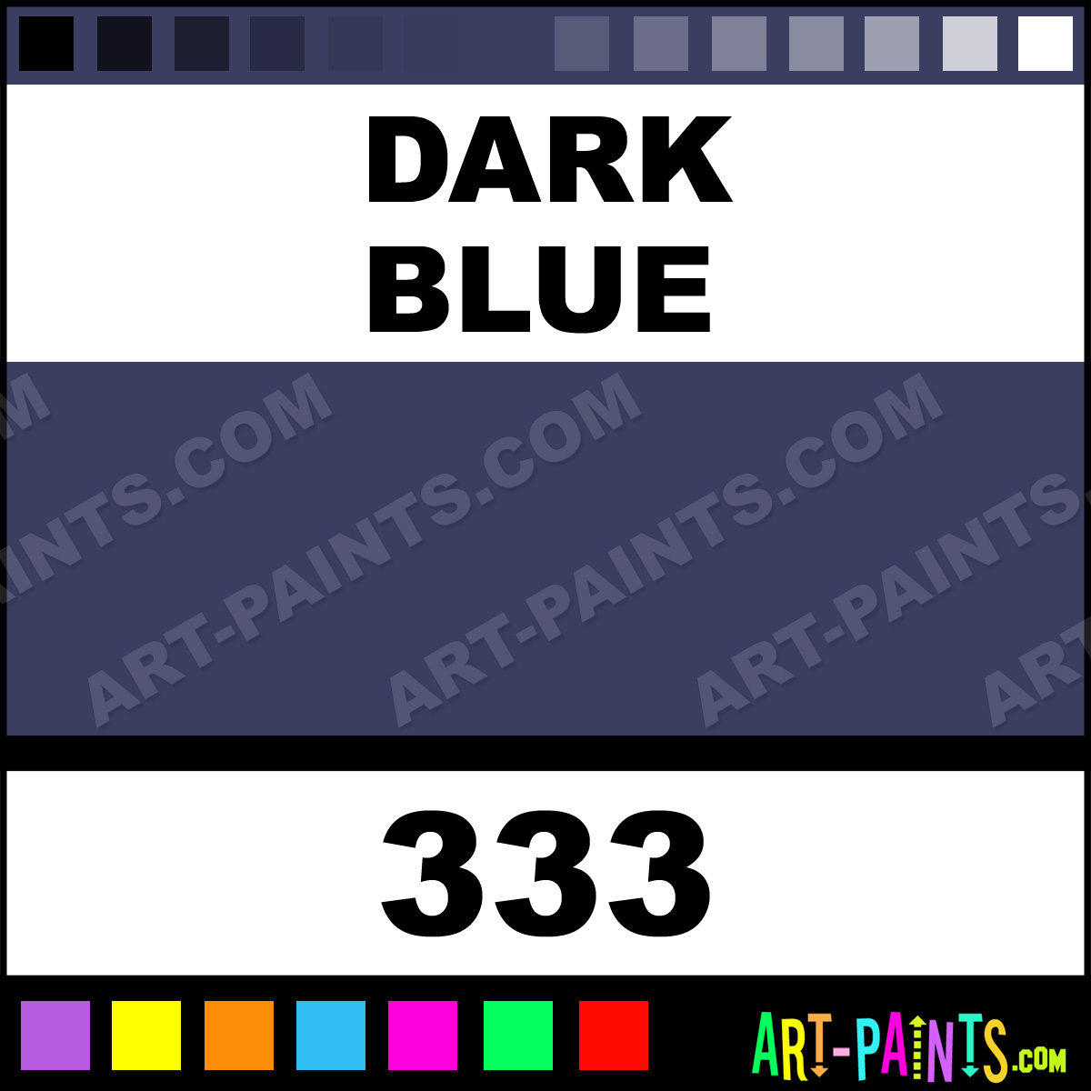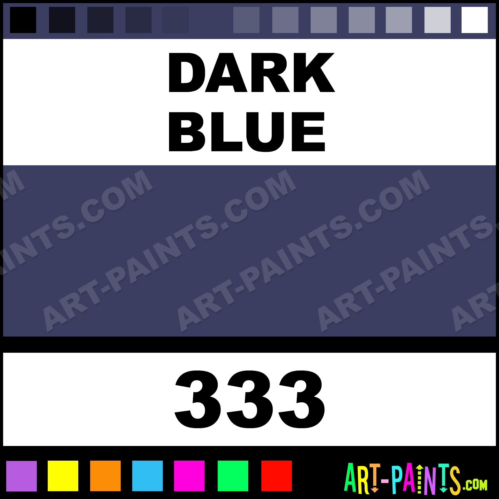 This beautiful Paint Body Face shade is called Dark Blue, and comes from a company called Snazaroo. Their product number, along with the HTML color code, RGB, and CMYK codes are listed below. This Beautiful Shade of Dark Blue and others can be found in the Snazaroo Paint Art Paint Gallery! Also be sure to browse through the other wonderful Professional Color Galleries of Face Paint, Makeup, Stage, Theater and Clown Paints to see more of Snazaroo Paint Body Brand Paints and other Body and Face Paint Manufacturers. And as always, Paint Paint Paint! -Art-Paints.com