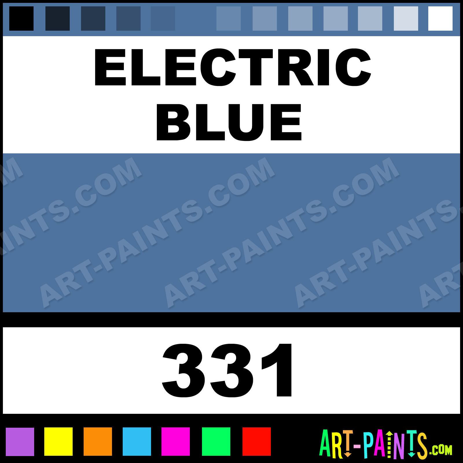 This beautiful Paint Body Face shade is called Electric Blue, and comes from a company called Snazaroo. Their product number, along with the HTML color code, RGB, and CMYK codes are listed below. This Beautiful Shade of Electric Blue and others can be found in the Snazaroo Paint Art Paint Gallery! Also be sure to browse through the other wonderful Professional Color Galleries of Face Paint, Makeup, Stage, Theater and Clown Paints to see more of Snazaroo Paint Body Brand Paints and other Body and Face Paint Manufacturers. And as always, Paint Paint Paint! -Art-Paints.com