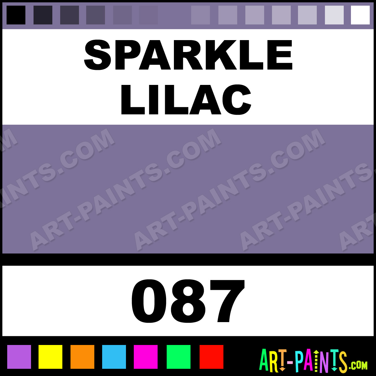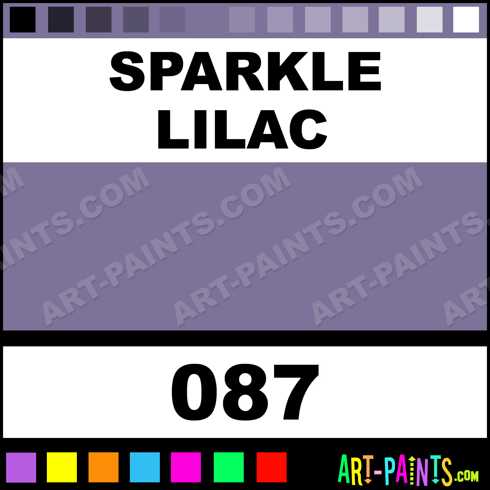 This beautiful Paint Body Face shade is called Sparkle Lilac, and comes from a company called Snazaroo. Their product number, along with the HTML color code, RGB, and CMYK codes are listed below. This Beautiful Shade of Sparkle Lilac and others can be found in the Snazaroo Paint Art Paint Gallery! Also be sure to browse through the other wonderful Professional Color Galleries of Face Paint, Makeup, Stage, Theater and Clown Paints to see more of Snazaroo Paint Body Brand Paints and other Body and Face Paint Manufacturers. And as always, Paint Paint Paint! -Art-Paints.com