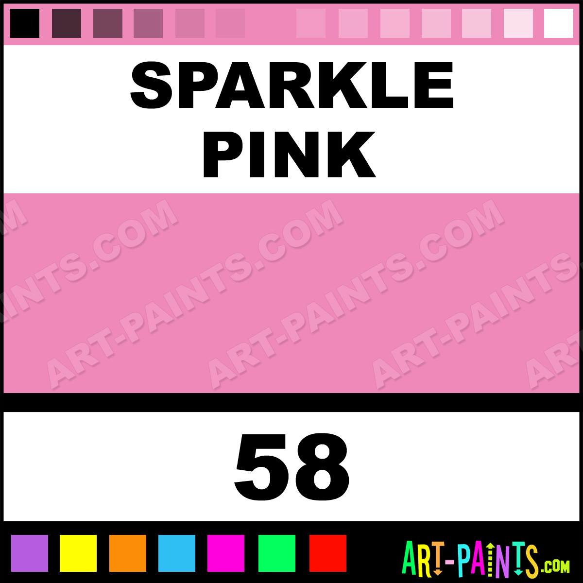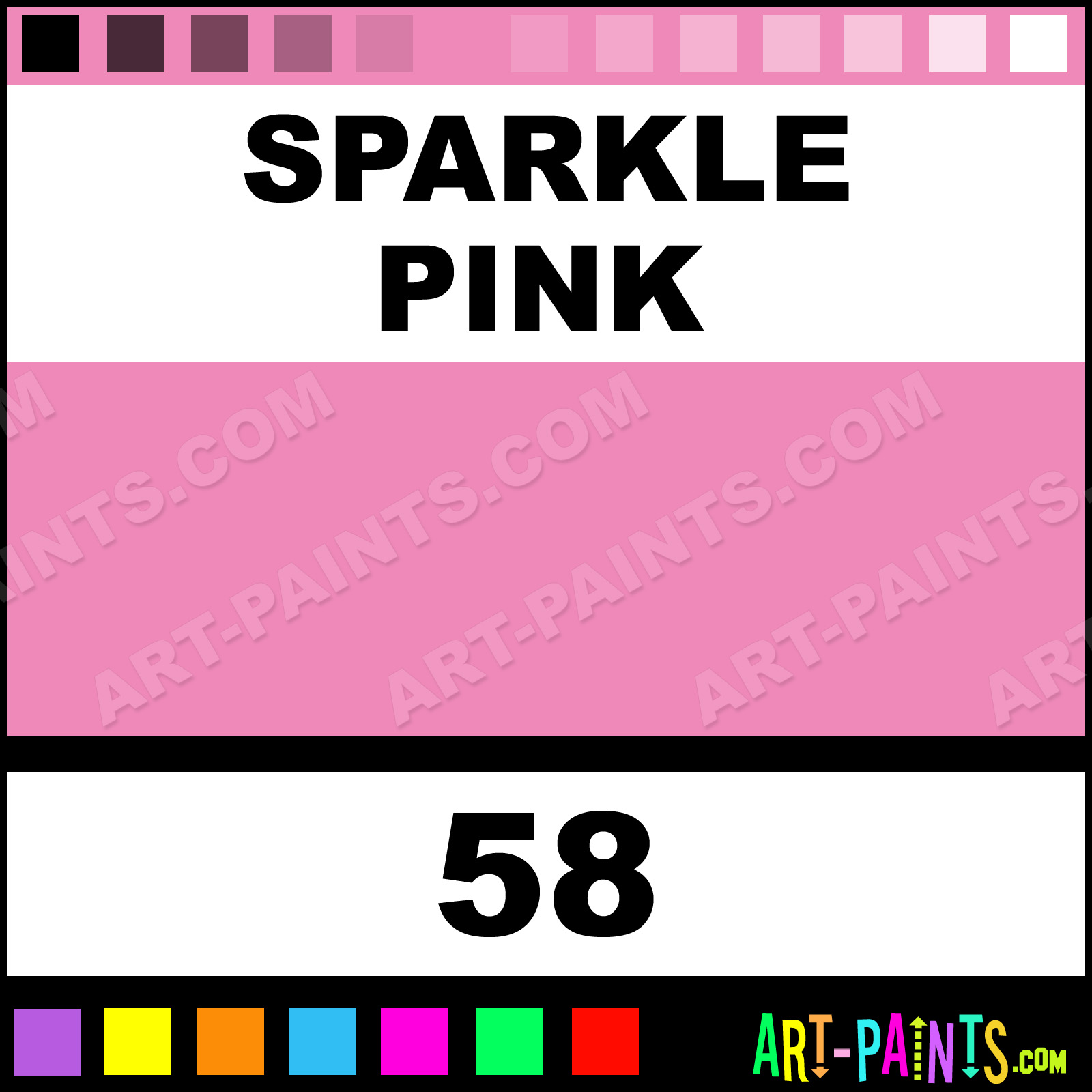 This beautiful Paint Body Face shade is called Sparkle Pink, and comes from a company called Snazaroo. Their product number, along with the HTML color code, RGB, and CMYK codes are listed below. This Beautiful Shade of Sparkle Pink and others can be found in the Snazaroo Paint Art Paint Gallery! Also be sure to browse through the other wonderful Professional Color Galleries of Face Paint, Makeup, Stage, Theater and Clown Paints to see more of Snazaroo Paint Body Brand Paints and other Body and Face Paint Manufacturers. And as always, Paint Paint Paint! -Art-Paints.com