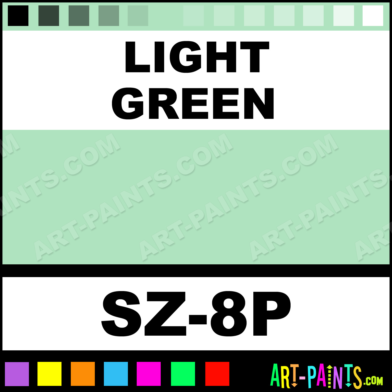 This beautiful Pastel Palette Body Face shade is called Light Green, and comes from a company called Snazaroo. Their product number, along with the HTML color code, RGB, and CMYK codes are listed below. This Beautiful Shade of Light Green and others can be found in the Snazaroo Pastel Palette Art Paint Gallery! Also be sure to browse through the other wonderful Professional Color Galleries of Face Paint, Makeup, Stage, Theater and Clown Paints to see more of Snazaroo Pastel Palette Body Brand Paints and other Body and Face Paint Manufacturers. And as always, Paint Paint Paint! -Art-Paints.com