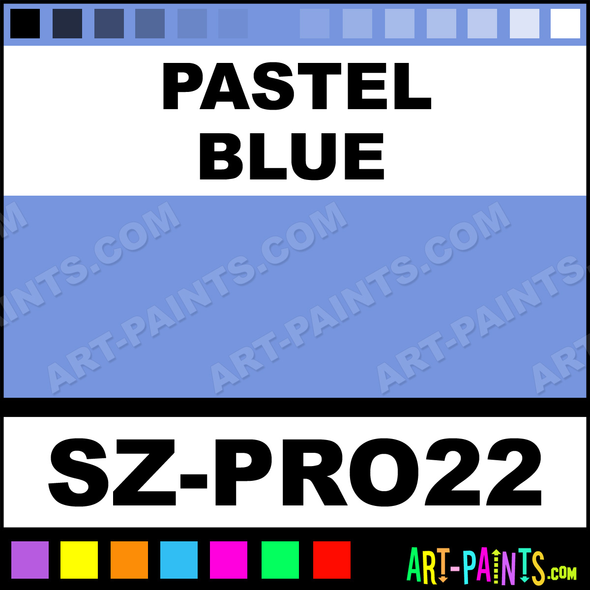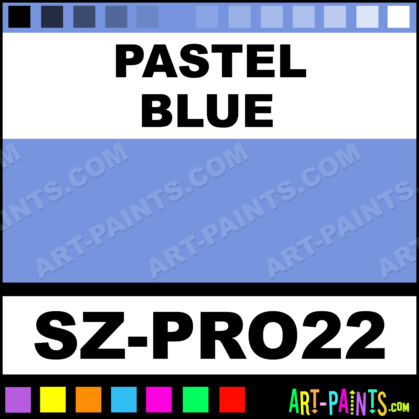 This beautiful Pro 22 Body Face shade is called Pastel Blue, and comes from a company called Snazaroo. Their product number, along with the HTML color code, RGB, and CMYK codes are listed below. This Beautiful Shade of Pastel Blue and others can be found in the Snazaroo Pro 22 Art Paint Gallery! Also be sure to browse through the other wonderful Professional Color Galleries of Face Paint, Makeup, Stage, Theater and Clown Paints to see more of Snazaroo Pro 22 Body Brand Paints and other Body and Face Paint Manufacturers. And as always, Paint Paint Paint! -Art-Paints.com