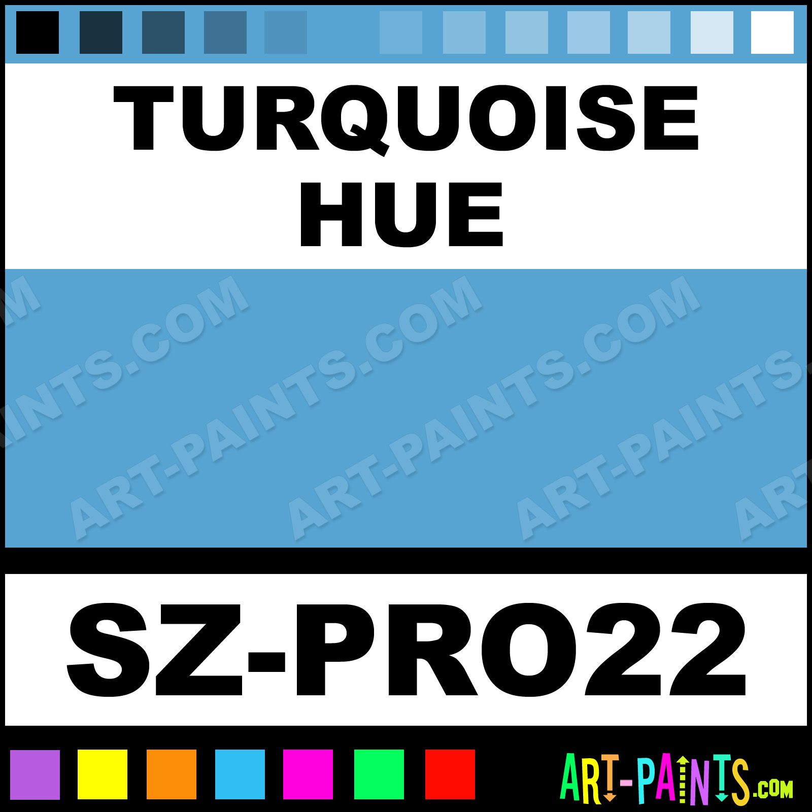 This beautiful Pro 22 Body Face shade is called Turquoise, and comes from a company called Snazaroo. Their product number, along with the HTML color code, RGB, and CMYK codes are listed below. This Beautiful Shade of Turquoise and others can be found in the Snazaroo Pro 22 Art Paint Gallery! Also be sure to browse through the other wonderful Professional Color Galleries of Face Paint, Makeup, Stage, Theater and Clown Paints to see more of Snazaroo Pro 22 Body Brand Paints and other Body and Face Paint Manufacturers. And as always, Paint Paint Paint! -Art-Paints.com