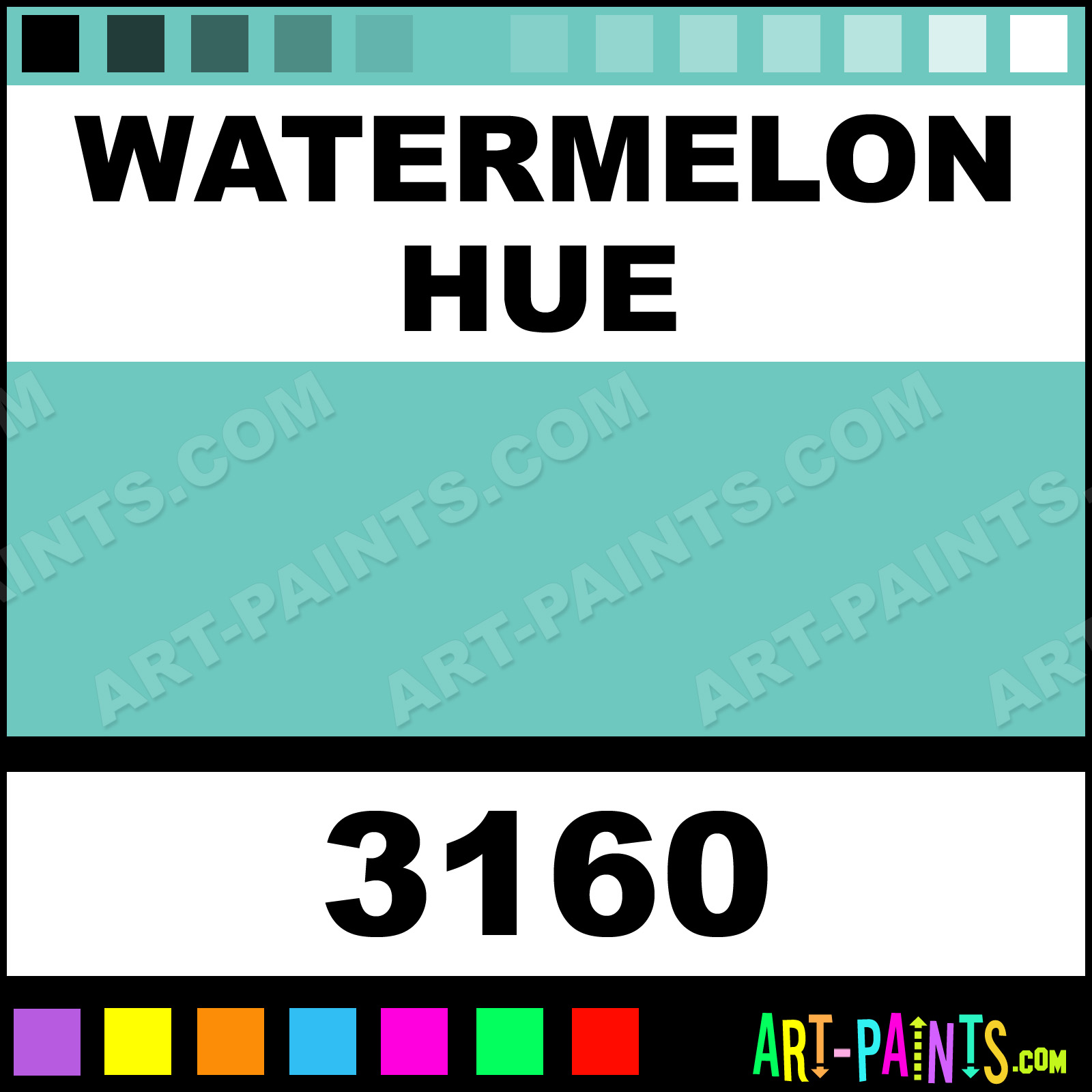 This beautiful Chocolates Body Face shade is called Watermelon, and comes from a company called Tom and Sallys. Their product number, along with the HTML color code, RGB, and CMYK codes are listed below. This Beautiful Shade of Watermelon and others can be found in the Tom and Sallys Chocolates Art Paint Gallery! Also be sure to browse through the other wonderful Professional Color Galleries of Face Paint, Makeup, Stage, Theater and Clown Paints to see more of Tom and Sallys Chocolates Body Brand Paints and other Body and Face Paint Manufacturers. And as always, Paint Paint Paint! -Art-Paints.com