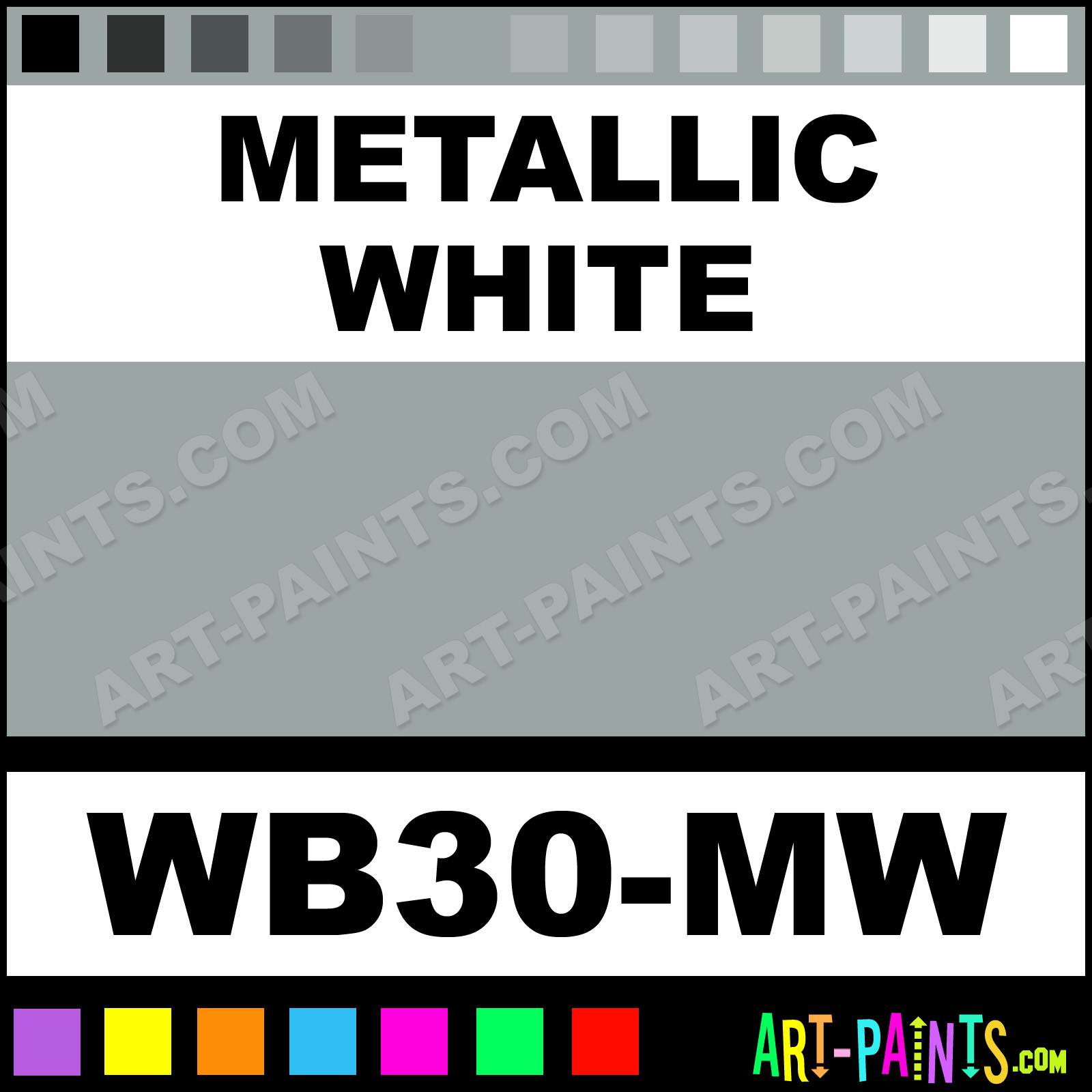 This beautiful Face Art FX Body Face shade is called Metallic White, and comes from a company called Wolfe. Their product number, along with the HTML color code, RGB, and CMYK codes are listed below. This Beautiful Shade of Metallic White and others can be found in the Wolfe Face Art FX Art Paint Gallery! Also be sure to browse through the other wonderful Professional Color Galleries of Face Paint, Makeup, Stage, Theater and Clown Paints to see more of Wolfe Face Art FX Body Brand Paints and other Body and Face Paint Manufacturers. And as always, Paint Paint Paint! -Art-Paints.com