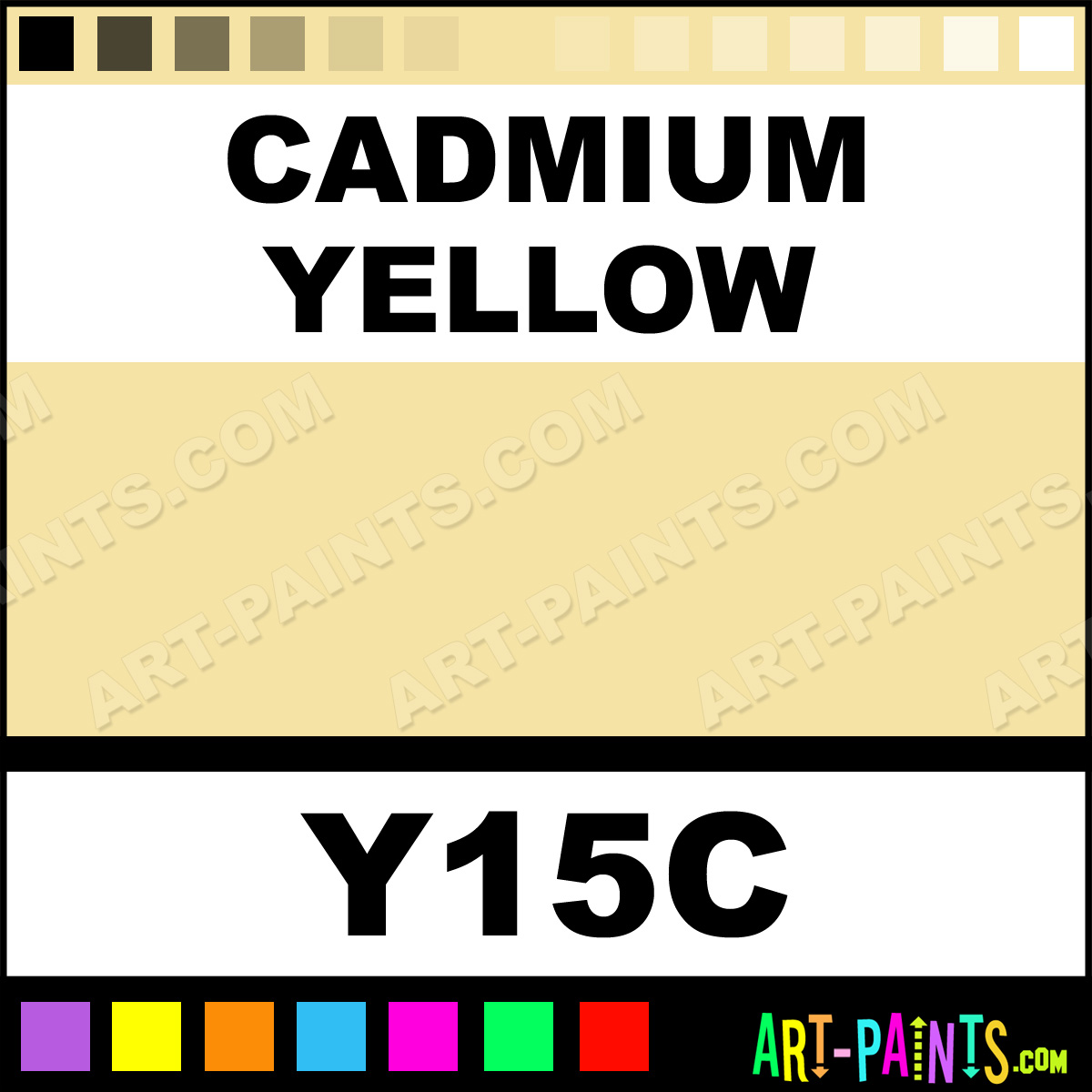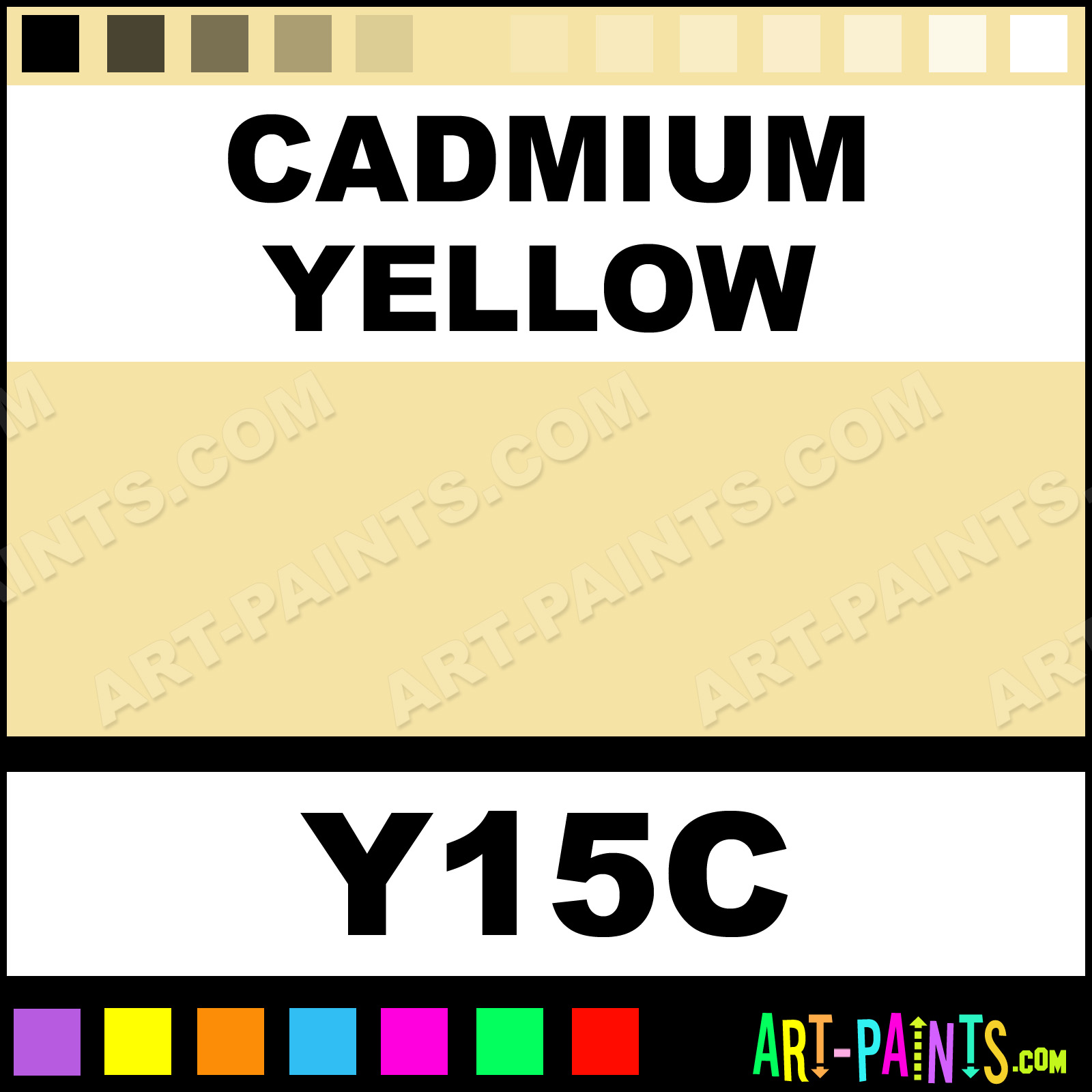 This beautiful Original Markers Calligraphy Ink Pigment shade is called Cadmium Yellow, and comes from a great company called Copic. Their product number, along with the HTML color code, RGB, and CMYK codes are listed below. This Beautiful Paint Pigment Shade of Cadmium Yellow and others can be found in the Copic Original Markers Art Ink Gallery! Be sure to browse through the other wonderful Professional Galleries to see more of Copic Original Markers Calligraphy Brand Inks and Paints and other Paint Manufacturers.   -Art-Paints.com