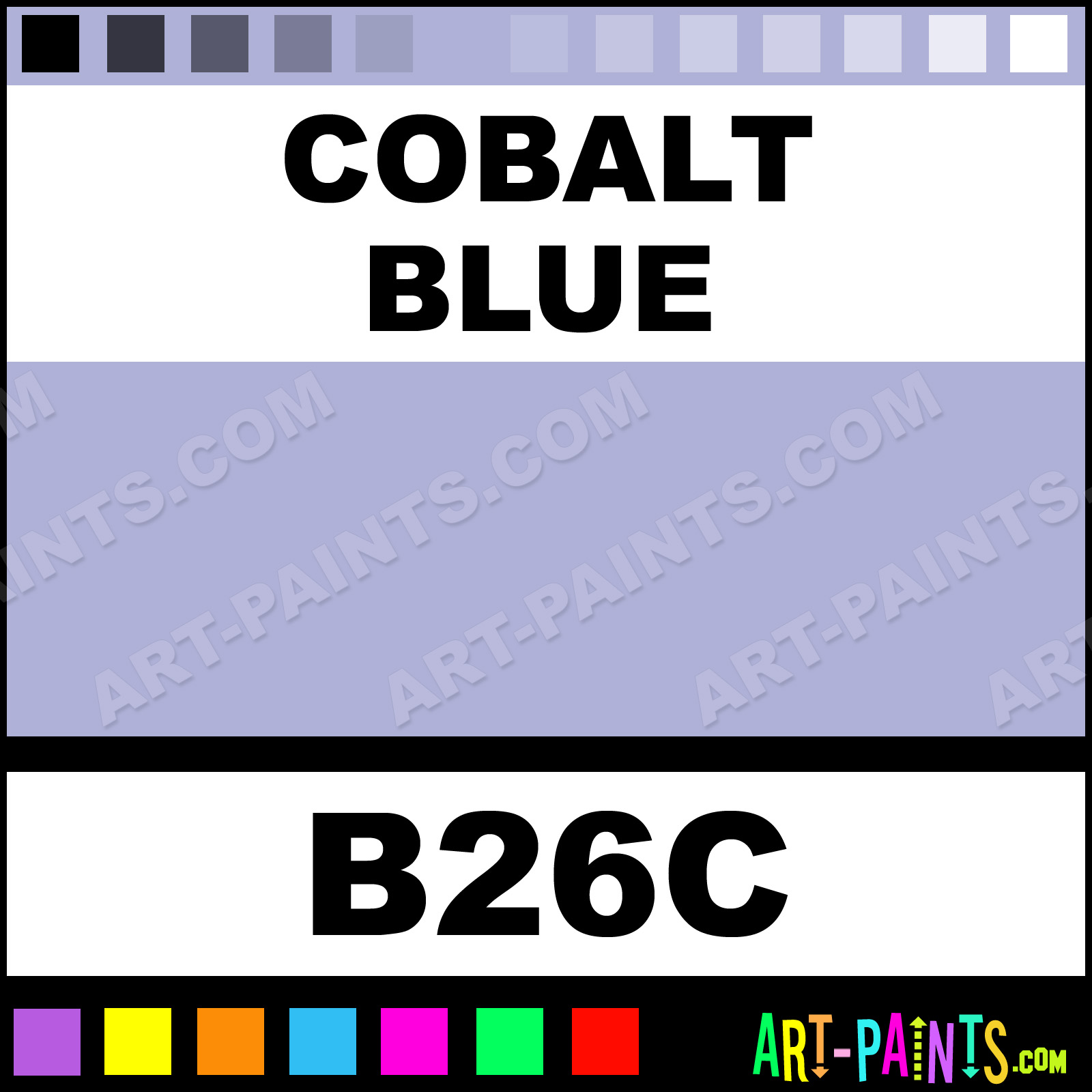 This beautiful Original Markers Calligraphy Ink Pigment shade is called Cobalt Blue, and comes from a great company called Copic. Their product number, along with the HTML color code, RGB, and CMYK codes are listed below. This Beautiful Paint Pigment Shade of Cobalt Blue and others can be found in the Copic Original Markers Art Ink Gallery! Be sure to browse through the other wonderful Professional Galleries to see more of Copic Original Markers Calligraphy Brand Inks and Paints and other Paint Manufacturers.   -Art-Paints.com