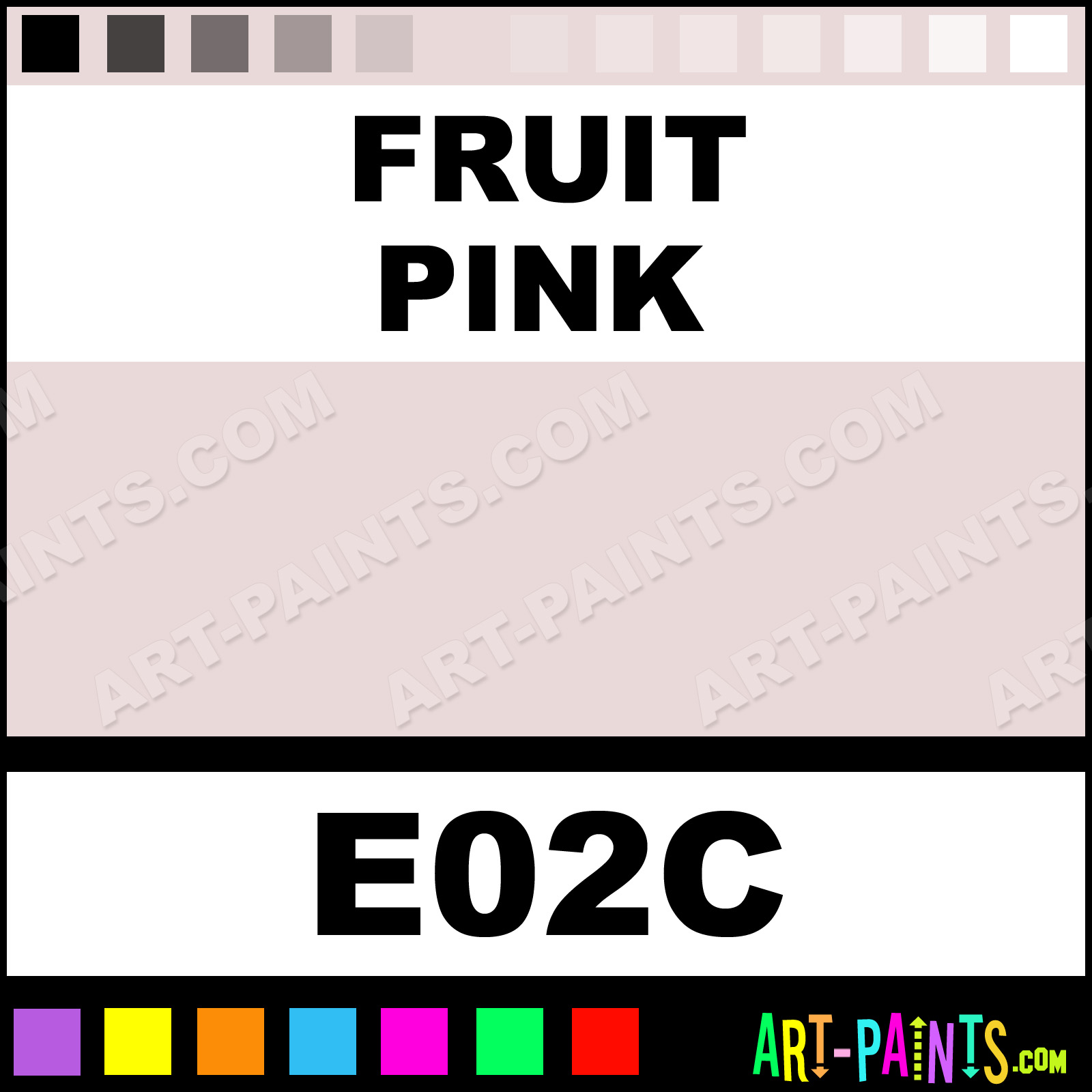 This beautiful Original Markers Calligraphy Ink Pigment shade is called Fruit Pink, and comes from a great company called Copic. Their product number, along with the HTML color code, RGB, and CMYK codes are listed below. This Beautiful Paint Pigment Shade of Fruit Pink and others can be found in the Copic Original Markers Art Ink Gallery! Be sure to browse through the other wonderful Professional Galleries to see more of Copic Original Markers Calligraphy Brand Inks and Paints and other Paint Manufacturers.   -Art-Paints.com