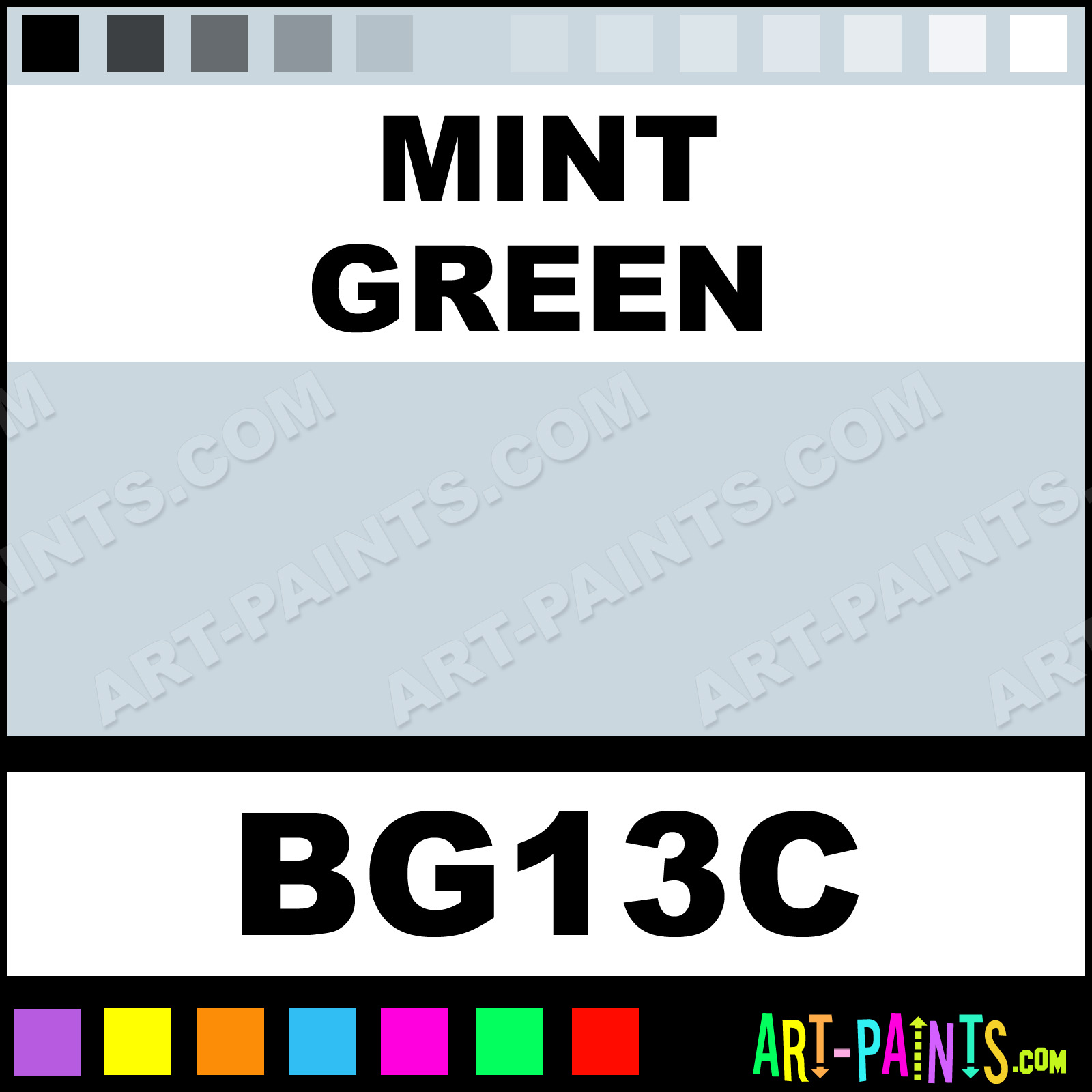 This beautiful Original Markers Calligraphy Ink Pigment shade is called Mint Green, and comes from a great company called Copic. Their product number, along with the HTML color code, RGB, and CMYK codes are listed below. This Beautiful Paint Pigment Shade of Mint Green and others can be found in the Copic Original Markers Art Ink Gallery! Be sure to browse through the other wonderful Professional Galleries to see more of Copic Original Markers Calligraphy Brand Inks and Paints and other Paint Manufacturers.   -Art-Paints.com