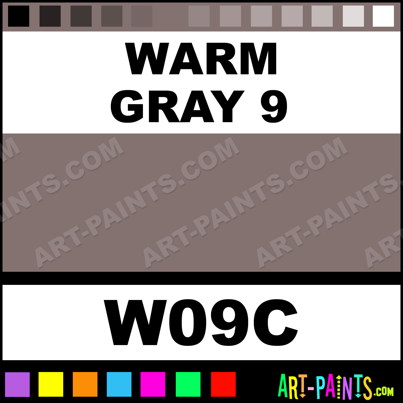 This beautiful Original Markers Calligraphy Ink Pigment shade is called Warm Gray 9, and comes from a great company called Copic. Their product number, along with the HTML color code, RGB, and CMYK codes are listed below. This Beautiful Paint Pigment Shade of Warm Gray 9 and others can be found in the Copic Original Markers Art Ink Gallery! Be sure to browse through the other wonderful Professional Galleries to see more of Copic Original Markers Calligraphy Brand Inks and Paints and other Paint Manufacturers.   -Art-Paints.com