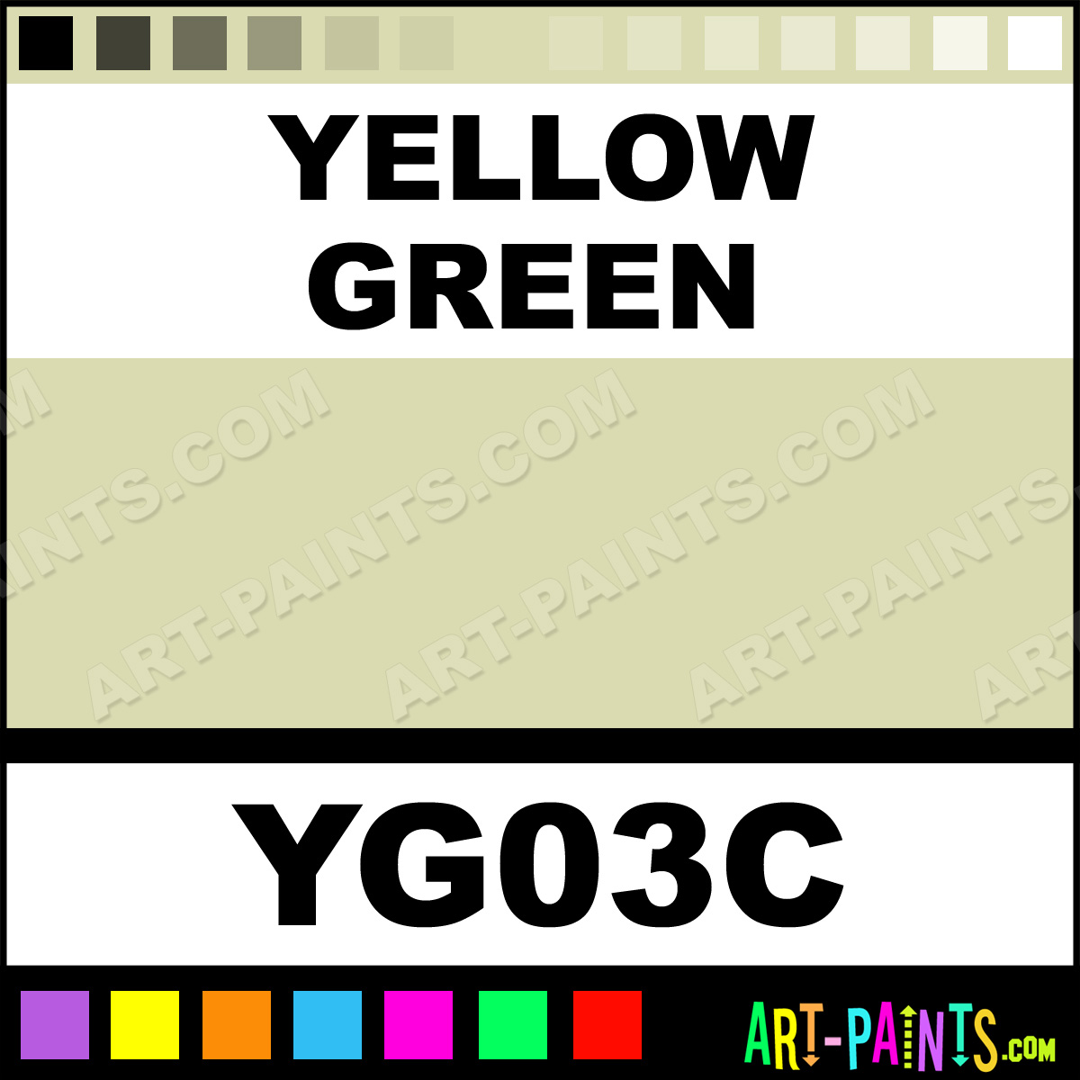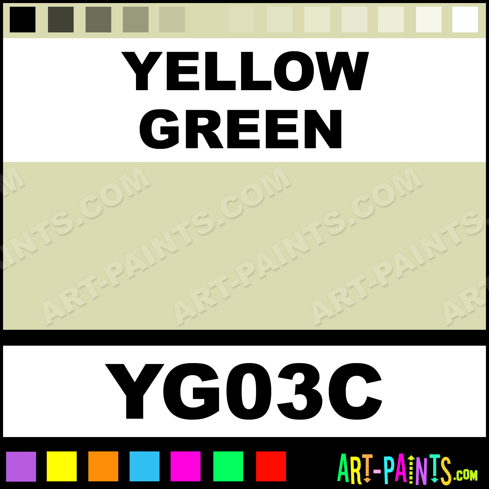 This beautiful Original Markers Calligraphy Ink Pigment shade is called Yellow Green, and comes from a great company called Copic. Their product number, along with the HTML color code, RGB, and CMYK codes are listed below. This Beautiful Paint Pigment Shade of Yellow Green and others can be found in the Copic Original Markers Art Ink Gallery! Be sure to browse through the other wonderful Professional Galleries to see more of Copic Original Markers Calligraphy Brand Inks and Paints and other Paint Manufacturers.   -Art-Paints.com