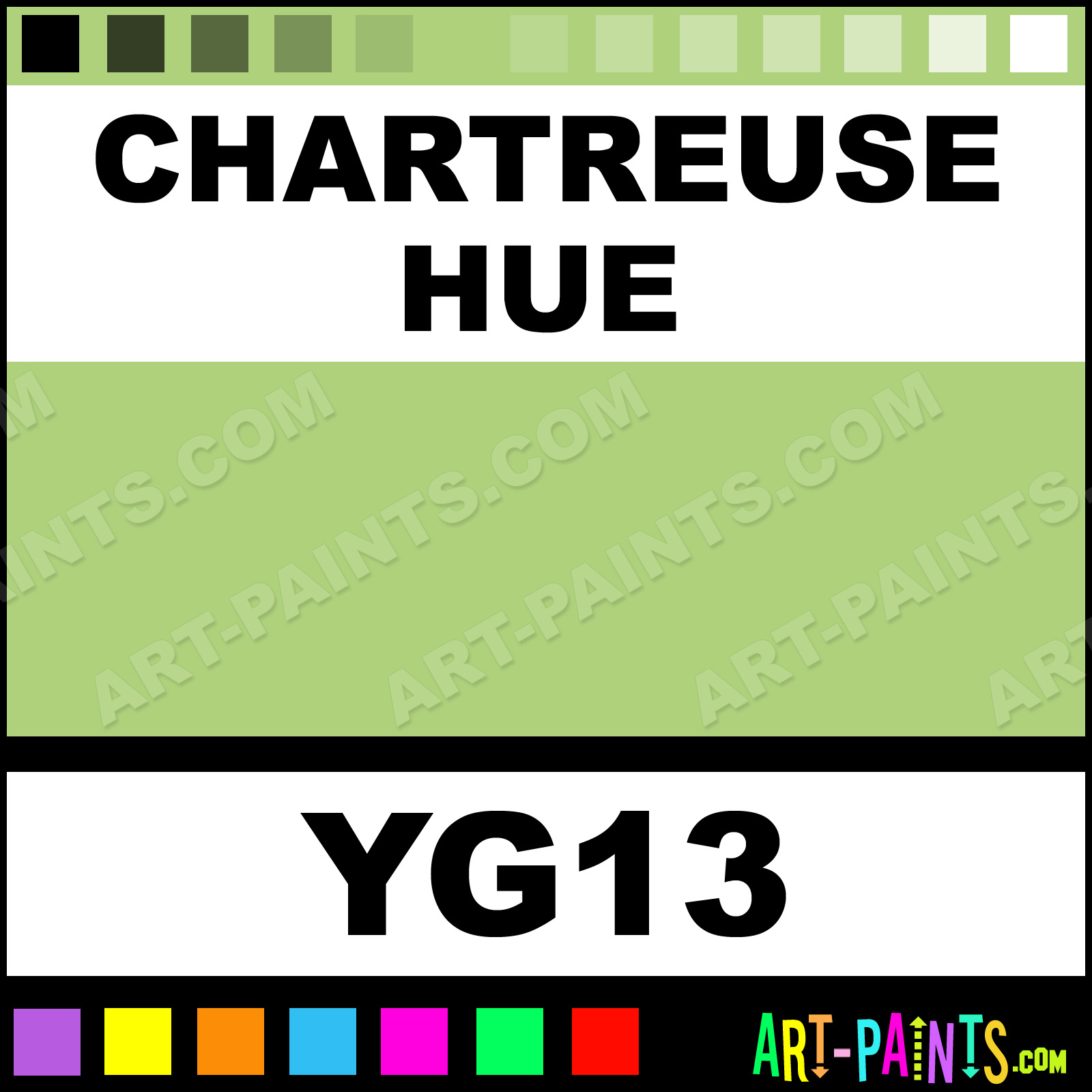 This beautiful Sketch Markers Calligraphy Ink Pigment shade is called Chartreuse, and comes from a great company called Copic. Their product number, along with the HTML color code, RGB, and CMYK codes are listed below. This Beautiful Paint Pigment Shade of Chartreuse and others can be found in the Copic Sketch Markers Art Ink Gallery! Be sure to browse through the other wonderful Professional Galleries to see more of Copic Sketch Markers Calligraphy Brand Inks and Paints and other Paint Manufacturers.   -Art-Paints.com