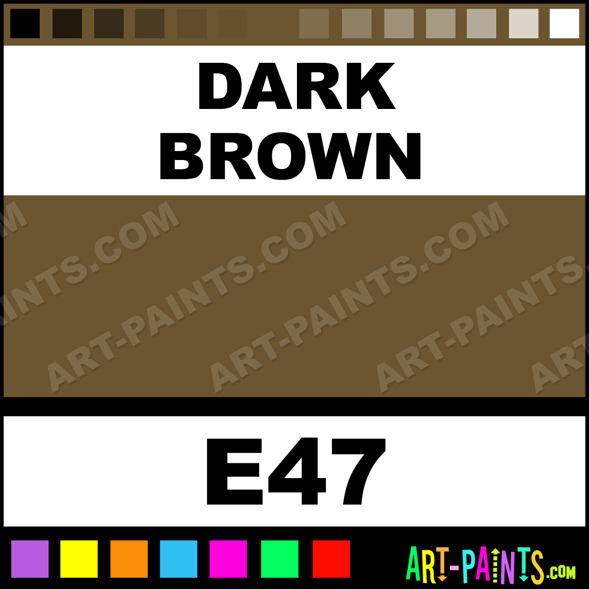 This beautiful Sketch Markers Calligraphy Ink Pigment shade is called Dark Brown, and comes from a great company called Copic. Their product number, along with the HTML color code, RGB, and CMYK codes are listed below. This Beautiful Paint Pigment Shade of Dark Brown and others can be found in the Copic Sketch Markers Art Ink Gallery! Be sure to browse through the other wonderful Professional Galleries to see more of Copic Sketch Markers Calligraphy Brand Inks and Paints and other Paint Manufacturers.   -Art-Paints.com