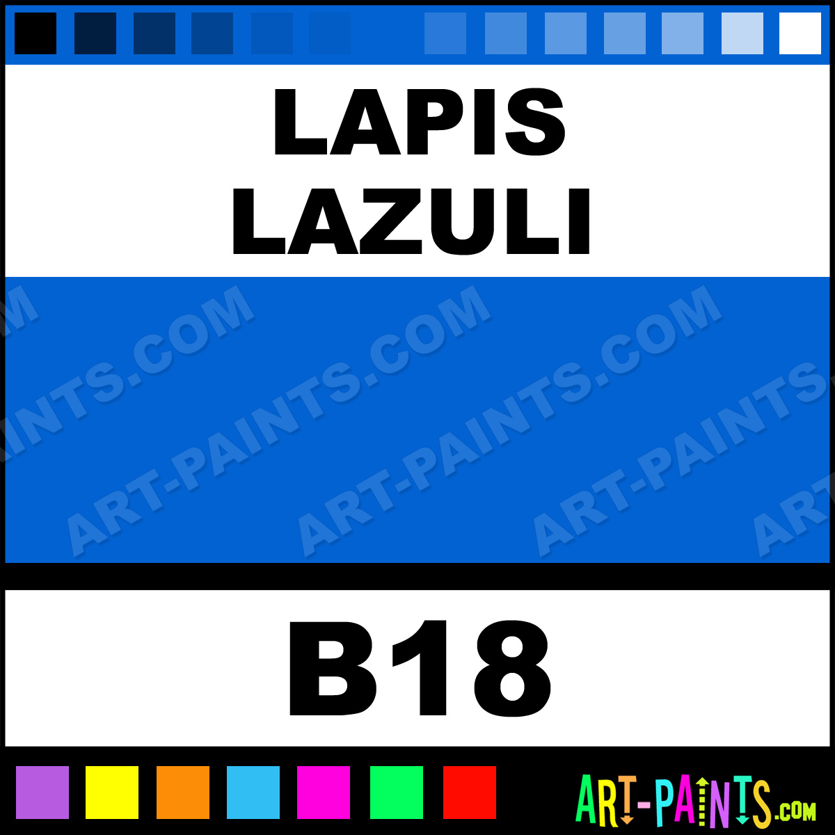 This beautiful Sketch Markers Calligraphy Ink Pigment shade is called Lapis Lazuli, and comes from a great company called Copic. Their product number, along with the HTML color code, RGB, and CMYK codes are listed below. This Beautiful Paint Pigment Shade of Lapis Lazuli and others can be found in the Copic Sketch Markers Art Ink Gallery! Be sure to browse through the other wonderful Professional Galleries to see more of Copic Sketch Markers Calligraphy Brand Inks and Paints and other Paint Manufacturers.   -Art-Paints.com