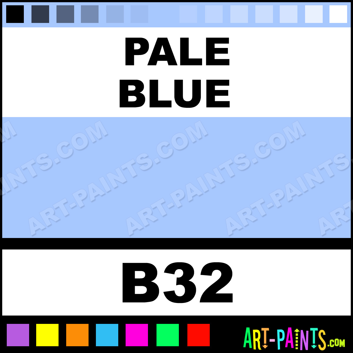 This beautiful Sketch Markers Calligraphy Ink Pigment shade is called Pale Blue, and comes from a great company called Copic. Their product number, along with the HTML color code, RGB, and CMYK codes are listed below. This Beautiful Paint Pigment Shade of Pale Blue and others can be found in the Copic Sketch Markers Art Ink Gallery! Be sure to browse through the other wonderful Professional Galleries to see more of Copic Sketch Markers Calligraphy Brand Inks and Paints and other Paint Manufacturers.   -Art-Paints.com