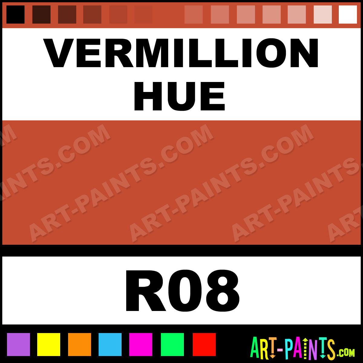 This beautiful Sketch Markers Calligraphy Ink Pigment shade is called Vermillion, and comes from a great company called Copic. Their product number, along with the HTML color code, RGB, and CMYK codes are listed below. This Beautiful Paint Pigment Shade of Vermillion and others can be found in the Copic Sketch Markers Art Ink Gallery! Be sure to browse through the other wonderful Professional Galleries to see more of Copic Sketch Markers Calligraphy Brand Inks and Paints and other Paint Manufacturers.   -Art-Paints.com