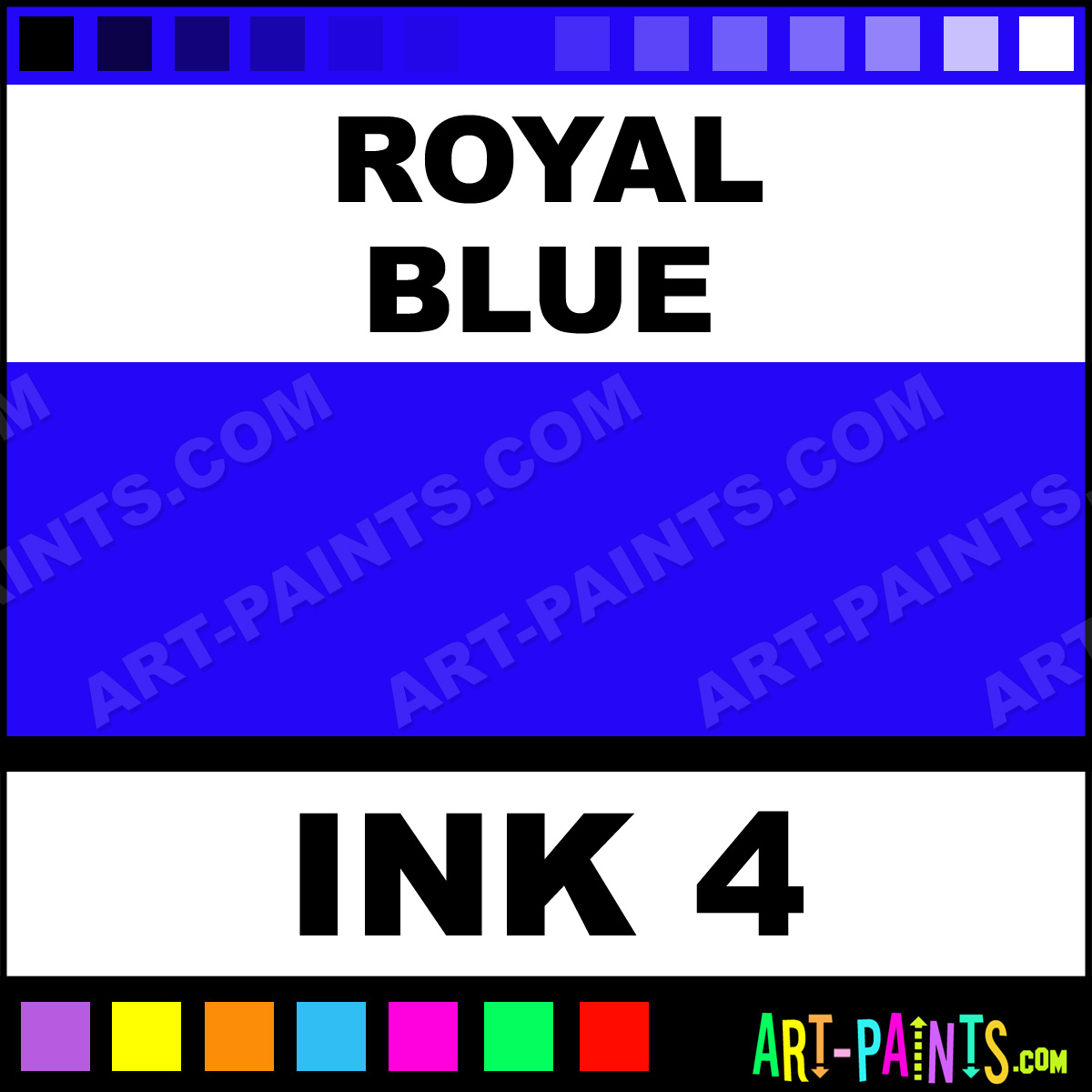 This beautiful Old English Writing Ink Calligraphy Ink shade is called Royal Blue, and comes from a company called Diamine. Their Ink product number, along with the Pigment HTML color code, RGB, and CMYK codes are listed below. This Beautiful Ink Shade of Royal Blue and others can be found in the Diamine Old English Writing Ink Art Paint Gallery! Also be sure to browse through the other wonderful Galleries to see more of Diamine Old English Writing Ink Calligraphy Ink Brand Paints and other Paint Manufacturers.   -Art-Paints.com