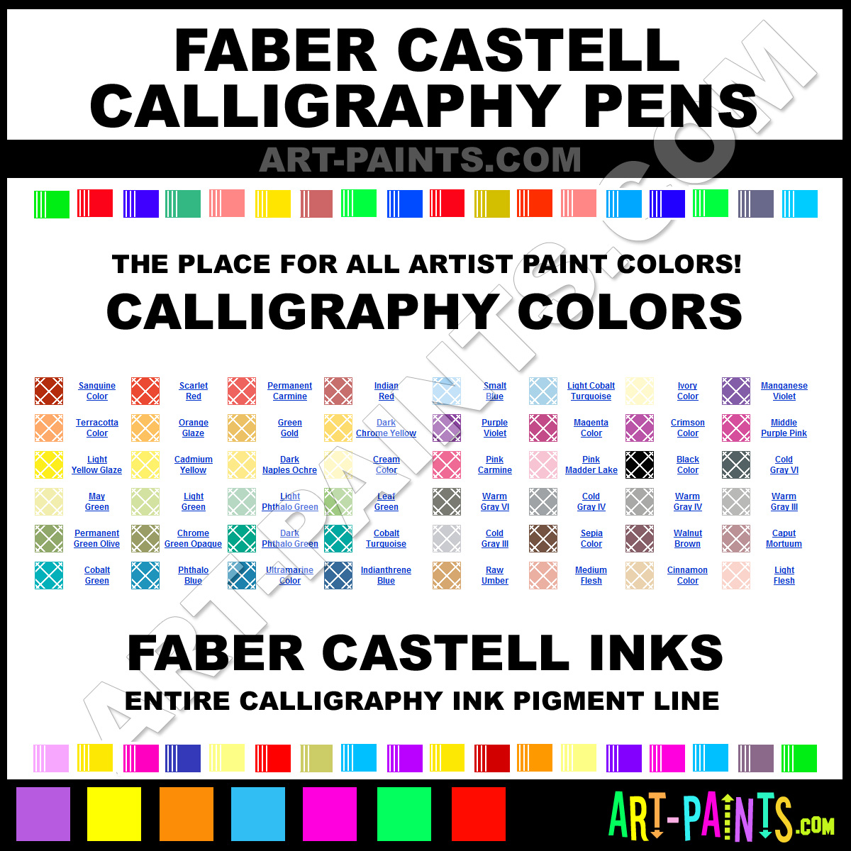 Faber Castell knows Calligraphy Ink Paints & Pigments! They make wonderful Brands of Paint for all types of Artists. They strive to perfect the process of color and are one of the most popular Calligraphy Ink Paint Brand companies in the World. Enjoy their entire collection below. Faber Castell makes a couple different types of Calligraphy Paint Brands including its Pitt Artist Pens Inks and its Pitt Pigment Paints! Choose a Calligraphy Ink type below to view that Brand and Colors and Hues!     -Art-Paints.com