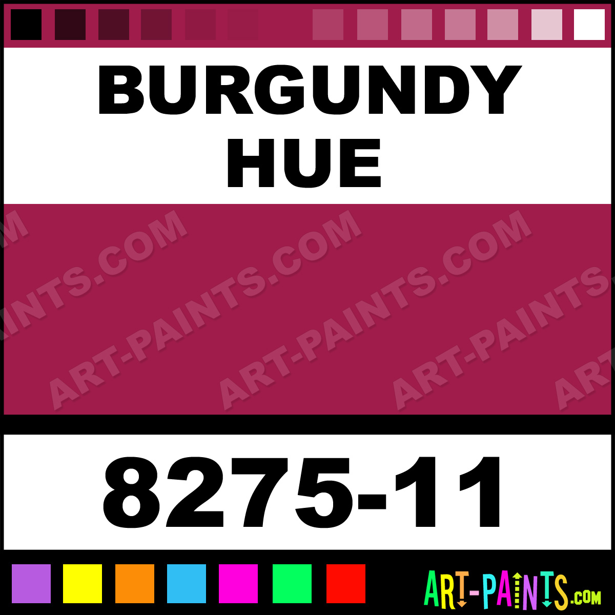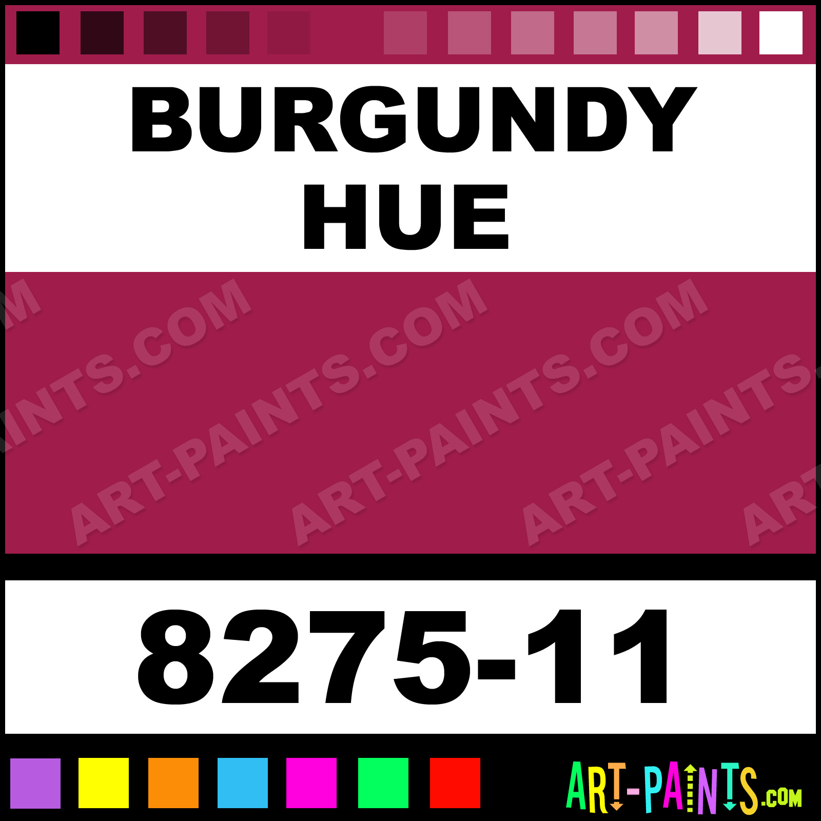 This beautiful Scented Ink Calligraphy Ink Pigment shade is called Burgundy, and comes from a great company called Francesco Rubinato. Their product number, along with the HTML color code, RGB, and CMYK codes are listed below. This Beautiful Paint Pigment Shade of Burgundy and others can be found in the Francesco Rubinato Scented Ink Art Ink Gallery! Be sure to browse through the other wonderful Professional Galleries to see more of Francesco Rubinato Scented Ink Calligraphy Brand Inks and Paints and other Paint Manufacturers.   -Art-Paints.com