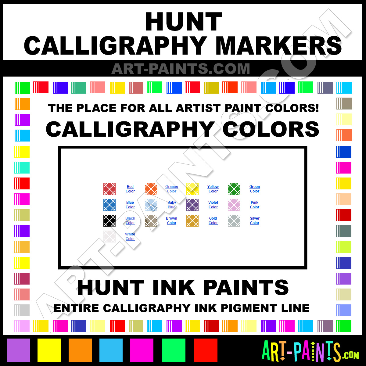 Hunt knows Calligraphy Ink Paints & Pigments! They make wonderful Brands of Paint for all types of Artists. They strive to perfect the process of color and are one of the most popular Calligraphy Ink Paint Brand companies in the World. Enjoy their entire collection below. Hunt makes a couple different types of Calligraphy Paint Brands including its Fine Point Markers, Painters Opaque Markers, Painters Neon Markers and Medium Point Markers! Choose a Calligraphy Ink type below to view that Brand and Colors and Hues!     -Art-Paints.com