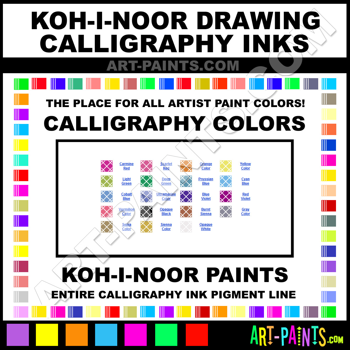 Koh-I-Noor knows Calligraphy Inks! They make a wonderful Brand of Paint called Koh-I-Noor Drawing Ink Calligraphy Colors that suits all types of Artists, great for Writing, Drawing or Painting. They strive to perfect the process of Ink, Fountain Pen Pigments and Color and are one of the most popular Calligraphy Ink companies in the World. Enjoy their entire collection below. Koh-I-Noor makes wonderful Inks that everyone is sure to enjoy! Choose a Calligraphy Ink below to view that Hue or Color!     -Art-Paints.com