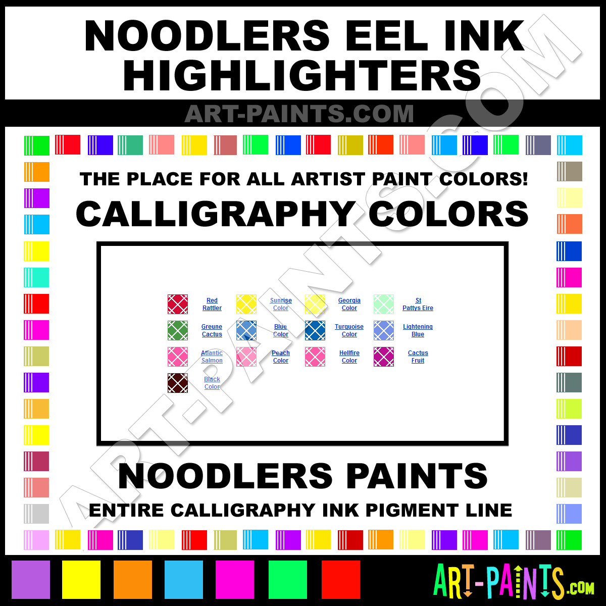 Noodlers makes a beautiful Eel Ink Highlighting Paint Brand. With a complete line of Calligraphy Ink Paints, 13 colors in all, available in beautiful hues and colors, they will no doubt keep you painting with Pigments and Inks and smiling at the same time. This brand is very unique and exquisite!