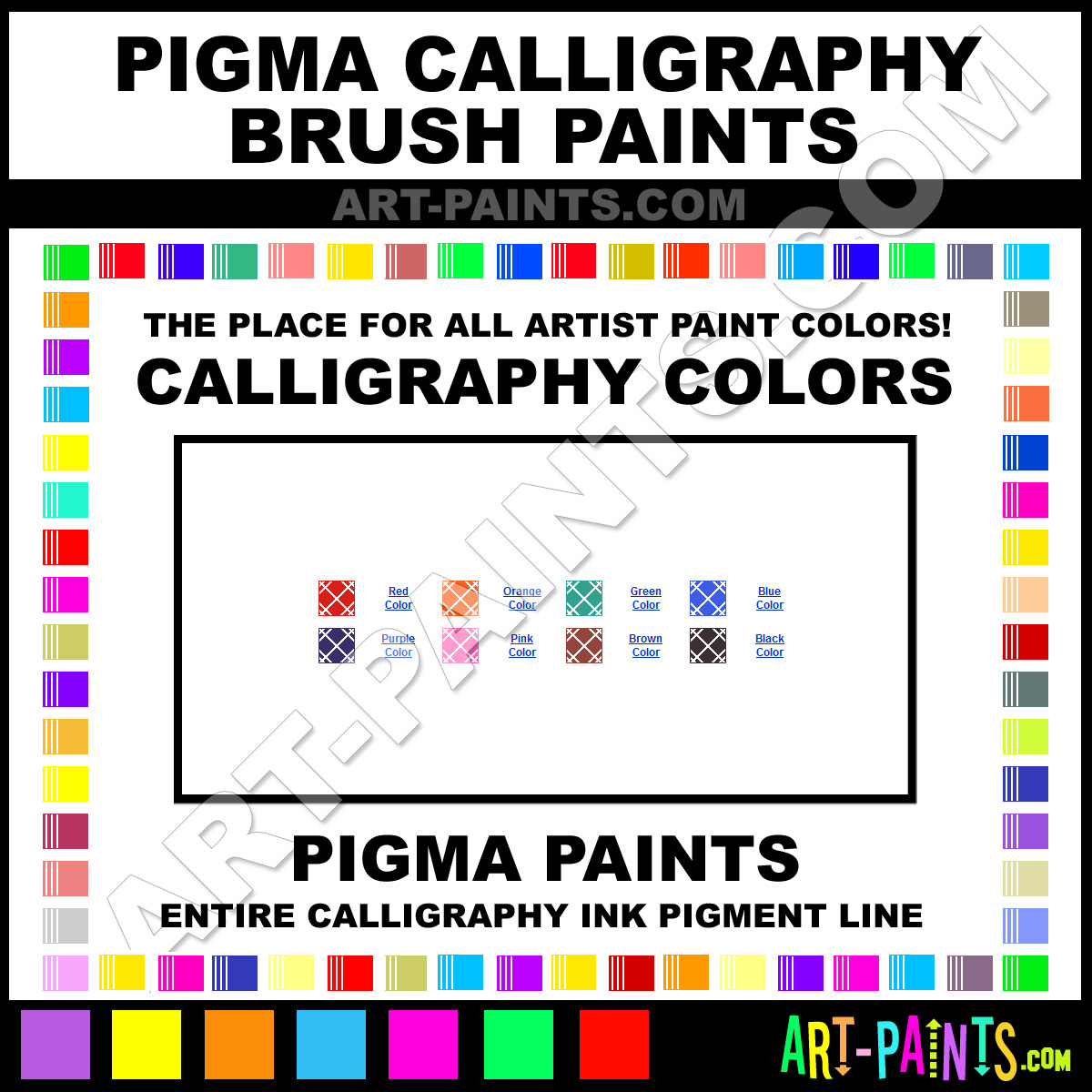 Pigma knows Calligraphy Inks! They make a wonderful Brand of Inks & Pigments called Pigma Calligraphy Brush Calligraphy Ink Colors that suits all types of Artists for either Writing, Drawing or Painting. They strive to perfect the process of color and are one of the most popular Calligraphy Paint Brand companies in the World. Enjoy their entire Ink and Pigment Paint collection from the list below. Pigma makes wonderful Artists Pigments that everyone is sure to enjoy! Choose a Calligraphy Ink Paint below to view that Hue, Tone or Color!     -Art-Paints.com