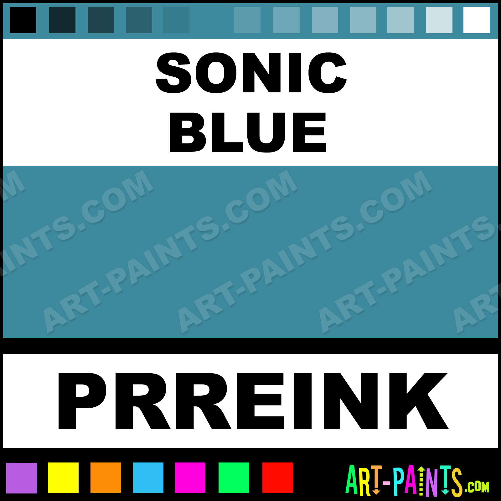 This beautiful Ink Calligraphy Ink shade is called Sonic Blue, and comes from a company called Private Reserve. Their Ink product number, along with the Pigment HTML color code, RGB, and CMYK codes are listed below. This Beautiful Ink Shade of Sonic Blue and others can be found in the Private Reserve Ink Art Paint Gallery! Also be sure to browse through the other wonderful Galleries to see more of Private Reserve Ink Calligraphy Ink Brand Paints and other Paint Manufacturers.   -Art-Paints.com
