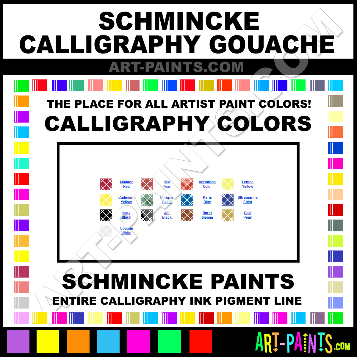 Schmincke knows Calligraphy Inks! They make a wonderful Brand of Inks & Pigments called Schmincke Calligraphy Gouache Calligraphy Ink Colors that suits all types of Artists for either Writing, Drawing or Painting. They strive to perfect the process of color and are one of the most popular Calligraphy Paint Brand companies in the World. Enjoy their entire Ink and Pigment Paint collection from the list below. Schmincke makes wonderful Artists Pigments that everyone is sure to enjoy! Choose a Calligraphy Ink Paint below to view that Color!     -Art-Paints.com