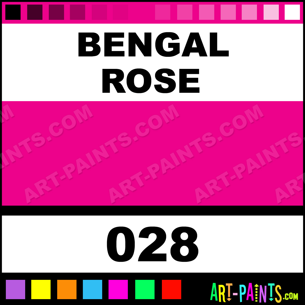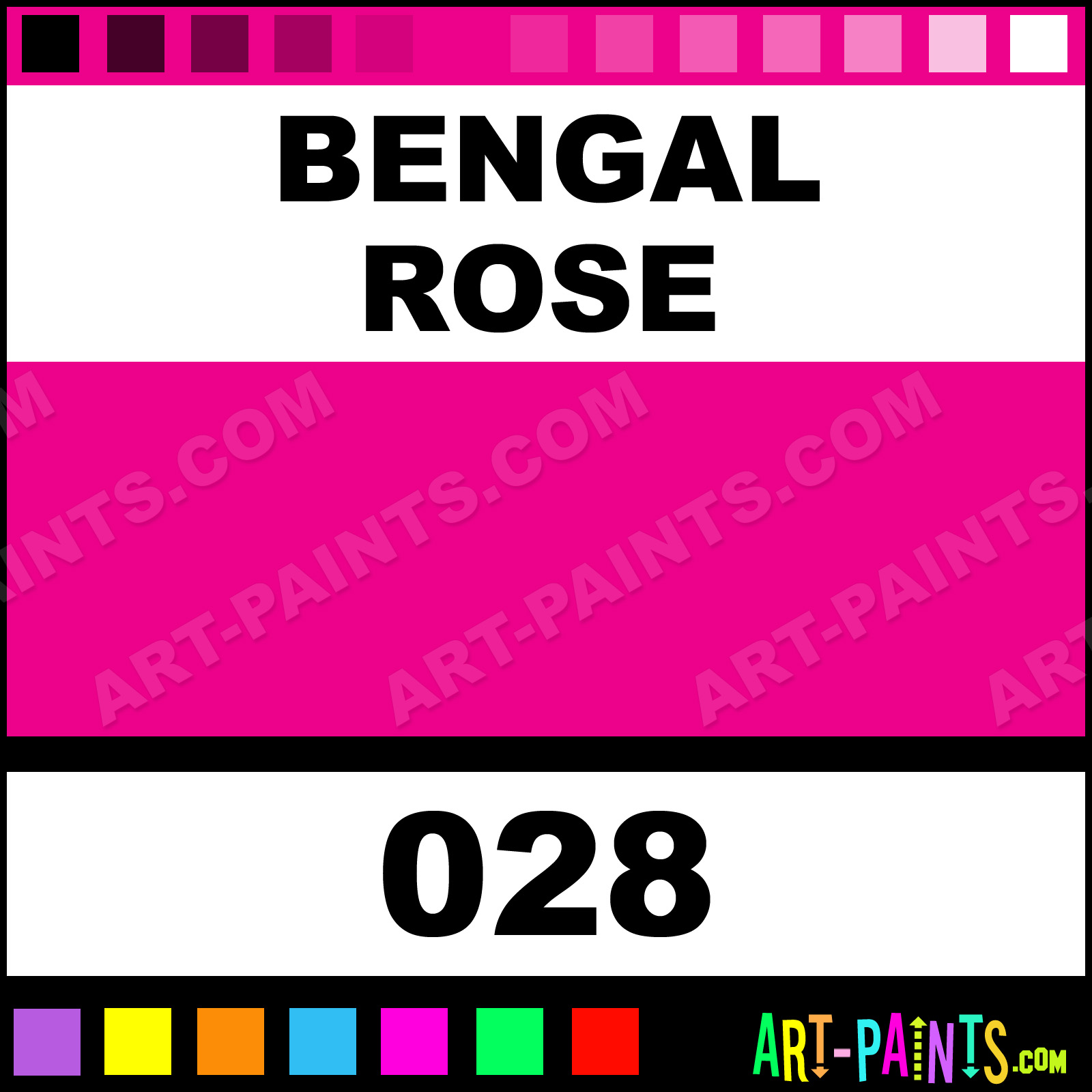 This beautiful Designers Gouache Calligraphy Ink Pigment shade is called Bengal Rose, and comes from a great company called Winsor and Newton. Their product number, along with the HTML color code, RGB, and CMYK codes are listed below. This Beautiful Paint Pigment Shade of Bengal Rose and others can be found in the Winsor and Newton Designers Gouache Art Ink Gallery! Be sure to browse through the other wonderful Professional Galleries to see more of Winsor and Newton Designers Gouache Calligraphy Brand Inks and Paints and other Paint Manufacturers.   -Art-Paints.com