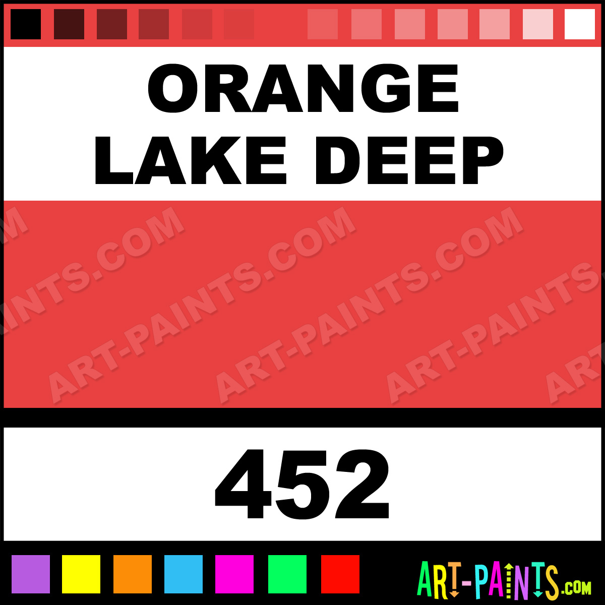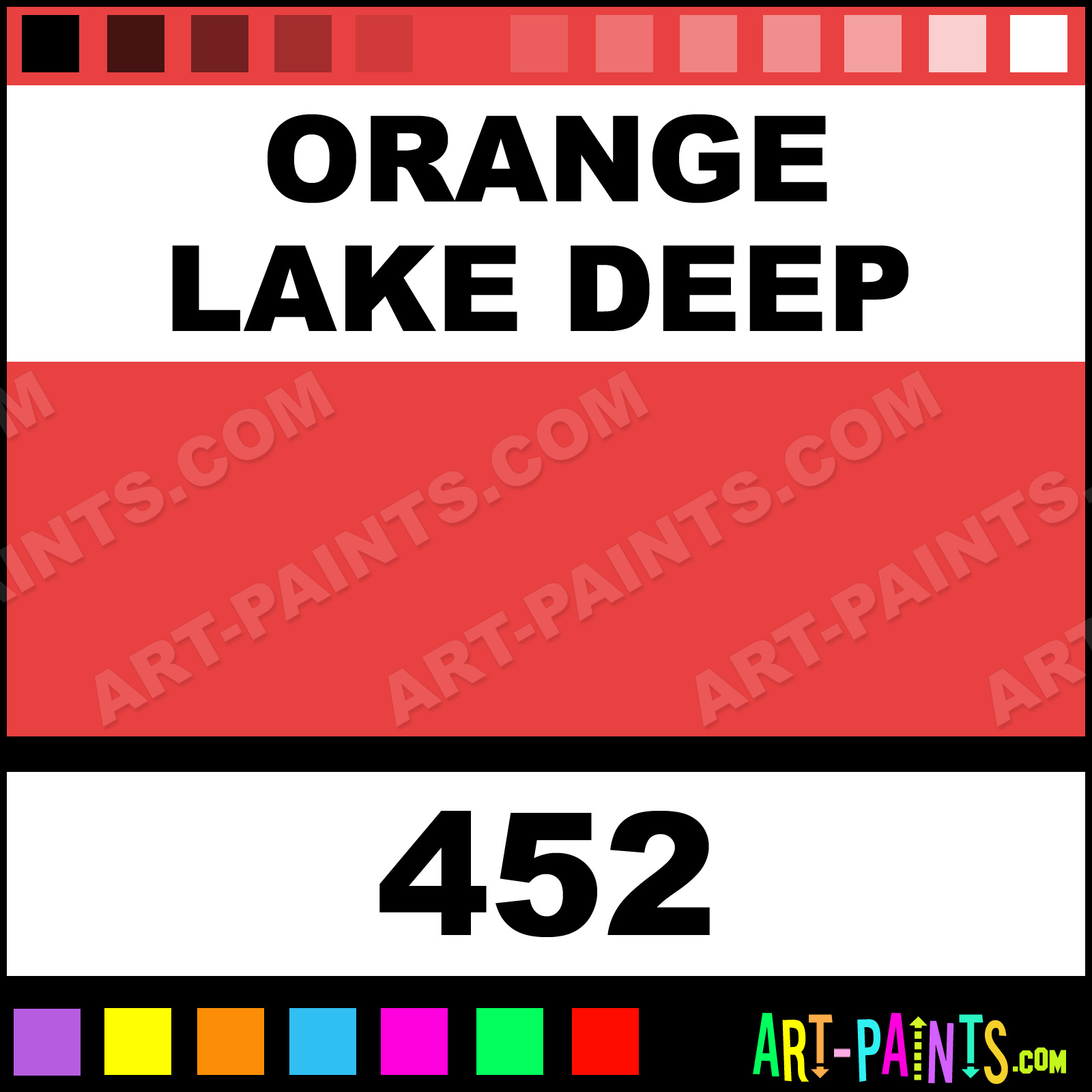 This beautiful Designers Gouache Calligraphy Ink Pigment shade is called Orange Lake Deep, and comes from a great company called Winsor and Newton. Their product number, along with the HTML color code, RGB, and CMYK codes are listed below. This Beautiful Paint Pigment Shade of Orange Lake Deep and others can be found in the Winsor and Newton Designers Gouache Art Ink Gallery! Be sure to browse through the other wonderful Professional Galleries to see more of Winsor and Newton Designers Gouache Calligraphy Brand Inks and Paints and other Paint Manufacturers.   -Art-Paints.com