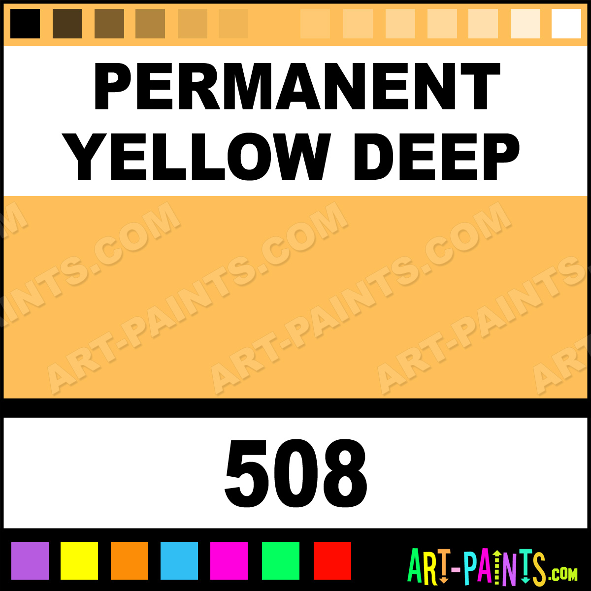 This beautiful Designers Gouache Calligraphy Ink Pigment shade is called Permanent Yellow Deep, and comes from a great company called Winsor and Newton. Their product number, along with the HTML color code, RGB, and CMYK codes are listed below. This Beautiful Paint Pigment Shade of Permanent Yellow Deep and others can be found in the Winsor and Newton Designers Gouache Art Ink Gallery! Be sure to browse through the other wonderful Professional Galleries to see more of Winsor and Newton Designers Gouache Calligraphy Brand Inks and Paints and other Paint Manufacturers.   -Art-Paints.com
