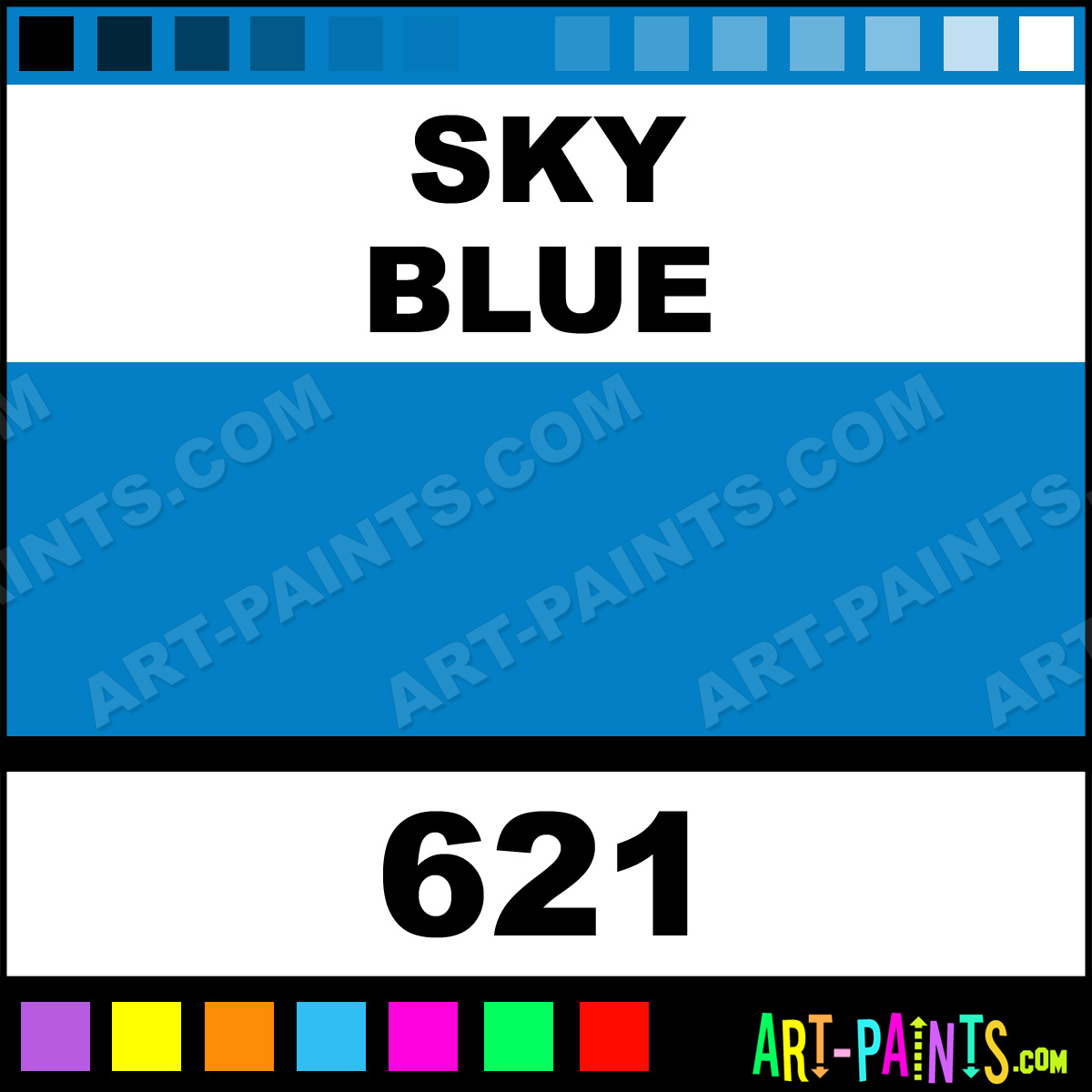 This beautiful Designers Gouache Calligraphy Ink Pigment shade is called Sky Blue, and comes from a great company called Winsor and Newton. Their product number, along with the HTML color code, RGB, and CMYK codes are listed below. This Beautiful Paint Pigment Shade of Sky Blue and others can be found in the Winsor and Newton Designers Gouache Art Ink Gallery! Be sure to browse through the other wonderful Professional Galleries to see more of Winsor and Newton Designers Gouache Calligraphy Brand Inks and Paints and other Paint Manufacturers.   -Art-Paints.com