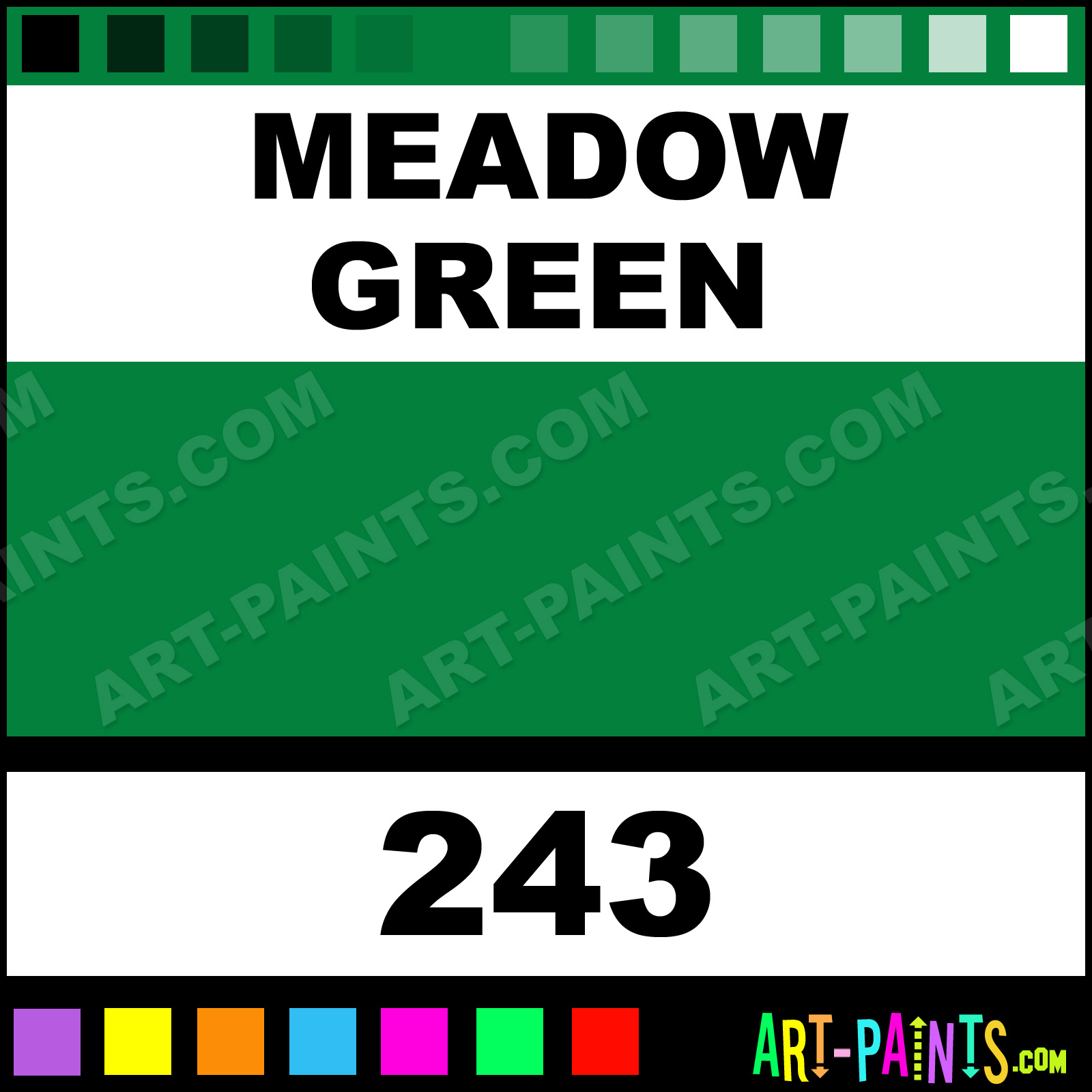This beautiful Spinell Pigment Casein Milk shade is called Meadow Green, and comes from a company called BioShield. Their product number, along with the HTML color code, RGB, and CMYK codes are listed below. This Beautiful Shade of Meadow Green and others can be found in the BioShield Spinell Pigment Art Paint Gallery! Also be sure to browse through the other wonderful Professional Color Galleries to see more of BioShield Spinell Pigment Casein Milk Brand Paints and other Paint Manufacturers. And as always, Paint Paint Paint! -Art-Paints.com