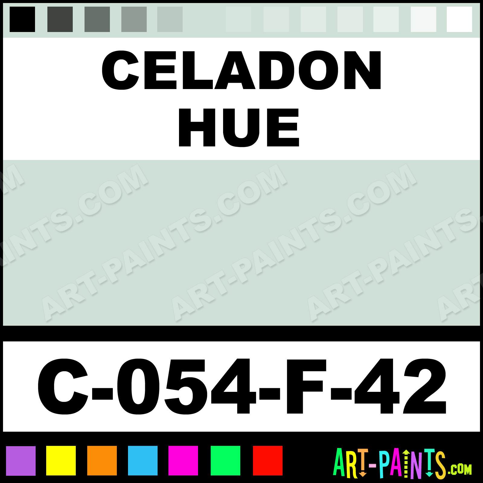 This beautiful F Series Ceramic shade is called Celadon, and comes from a company called Amaco. Their product number, along with the HTML color code, RGB, and CMYK codes are listed below. This Beautiful Shade of Celadon and others can be found in the Amaco F Series Art Paint Gallery! Also be sure to browse through the other wonderful Professional Color Galleries to see more of Amaco F Series Ceramic Porcelain, Pottery, Bisque, Greenware Brand Paints and other Paint Manufacturers. And as always, Paint Paint Paint! -Art-Paints.com