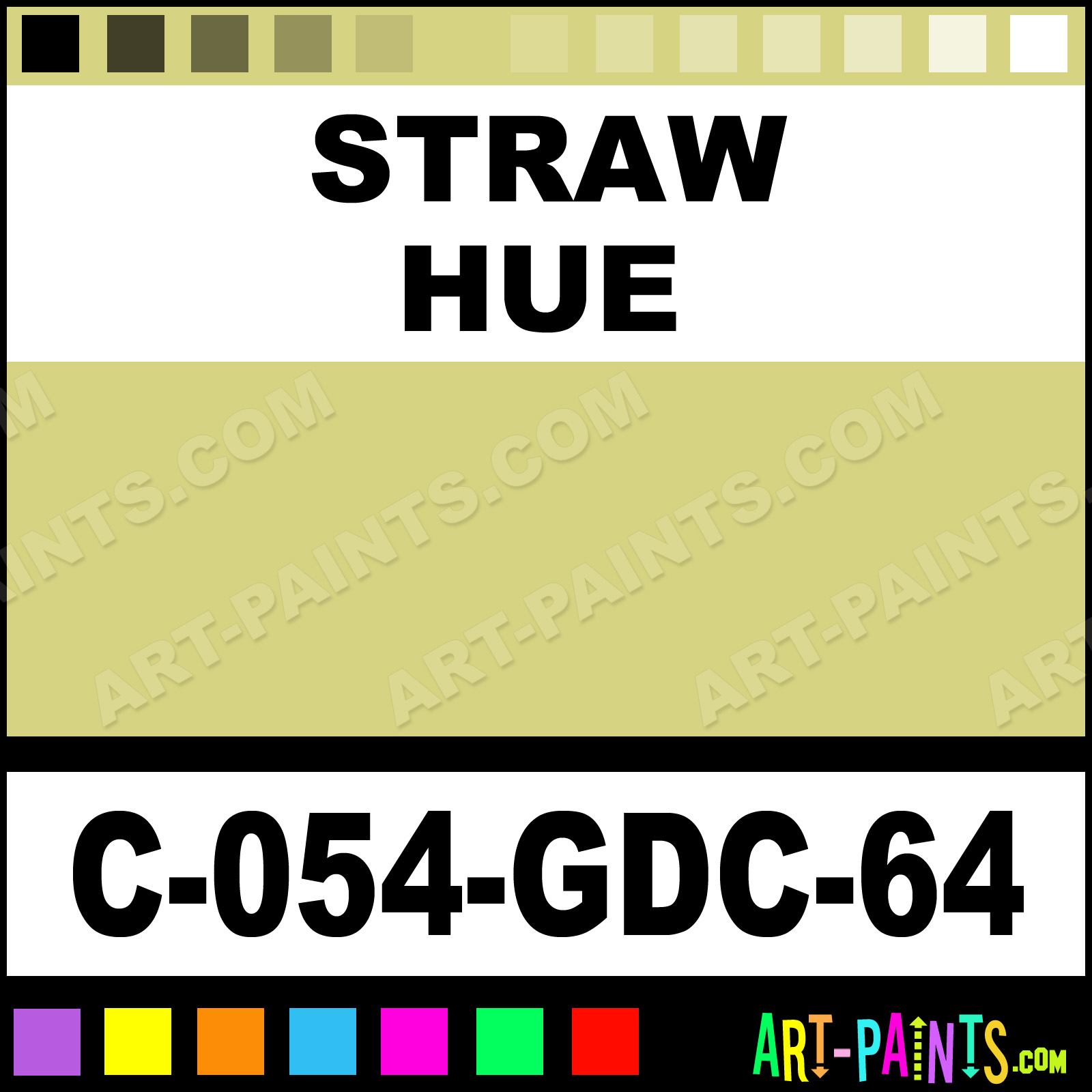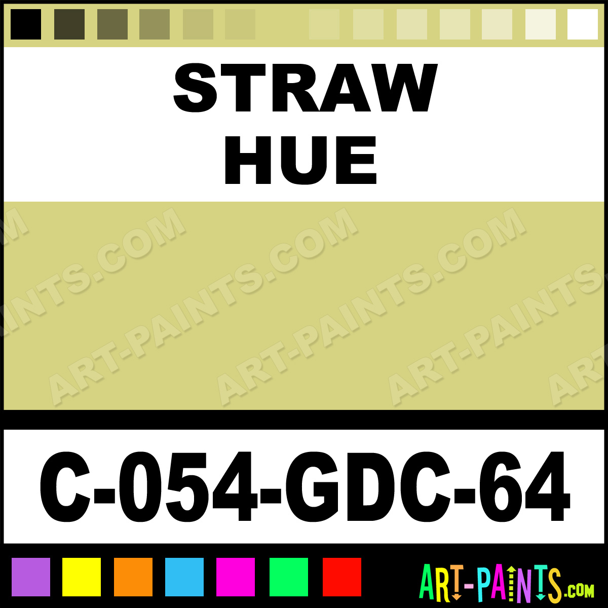 This beautiful Majolica Gloss Ceramic shade is called Straw, and comes from a company called Amaco. Their product number, along with the HTML color code, RGB, and CMYK codes are listed below. This Beautiful Shade of Straw and others can be found in the Amaco Majolica Gloss Art Paint Gallery! Also be sure to browse through the other wonderful Professional Color Galleries to see more of Amaco Majolica Gloss Ceramic Porcelain, Pottery, Bisque, Greenware Brand Paints and other Paint Manufacturers. And as always, Paint Paint Paint! -Art-Paints.com